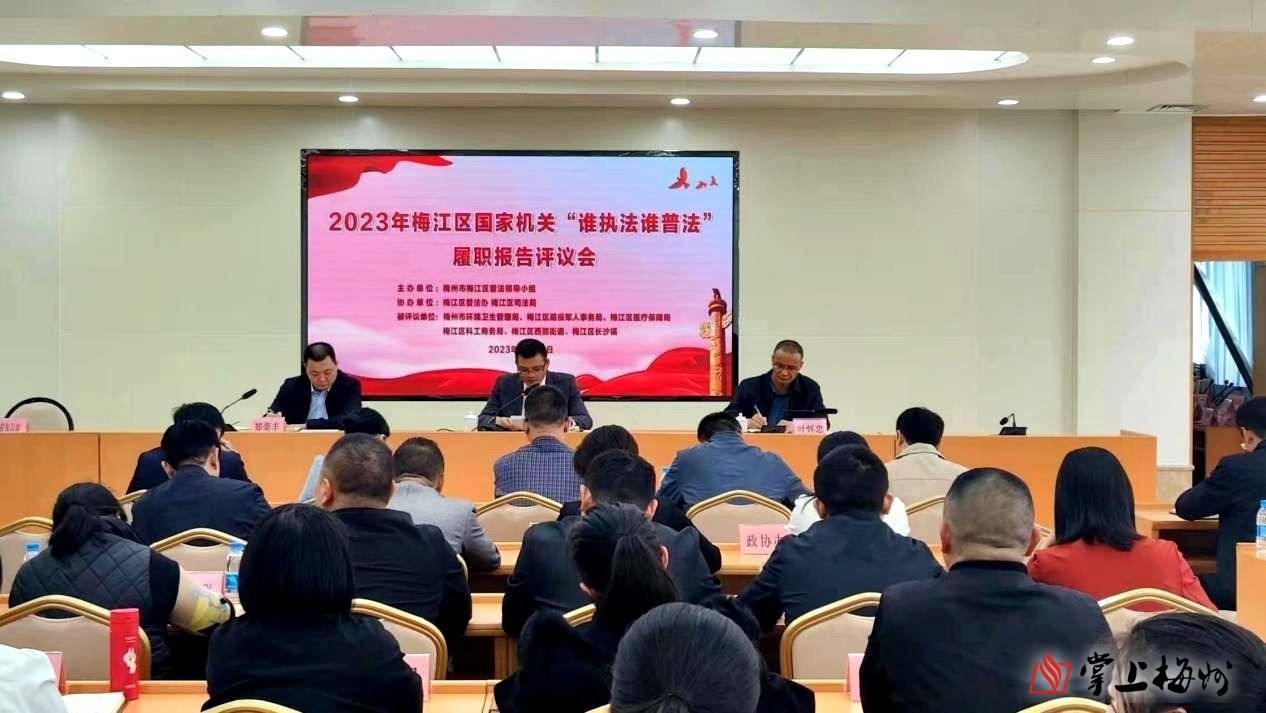 掌上梅州讯 11月29日下午,梅江区在区委区政府18号楼6楼会议室召开了2023年国家机关“谁执法谁普法”履职报告评议会。