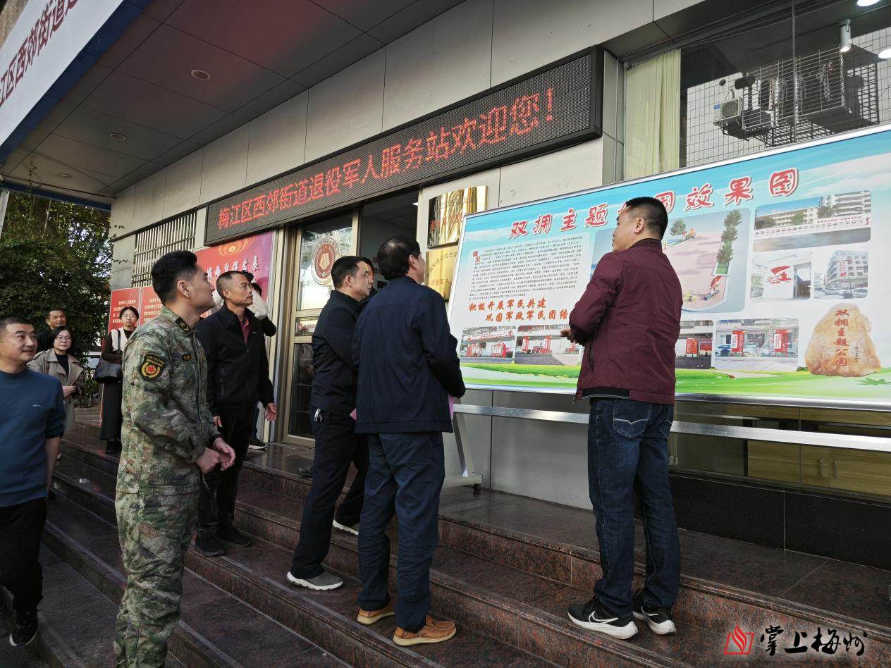 吴华洲等一行人首先参观了街道退役军人服务站,在听取服务站工作情况介绍的同时,还翻阅了服务站的服务体系基层建设、就业创业、帮扶援助、志愿服务管理等工作台账,并就街道解决退役军人服务工作方面进行详细交流,对西郊退役军人服务站创建工作方面的经验做法给予高度评价;随后移步至街道五楼国防教育训练室参观,听取了革命苏区西郊区域的革命事迹;行程最后到我街道辖区退役军人开办的乡村振兴产品销售服务中心观摩,了解退役军人创业需求。