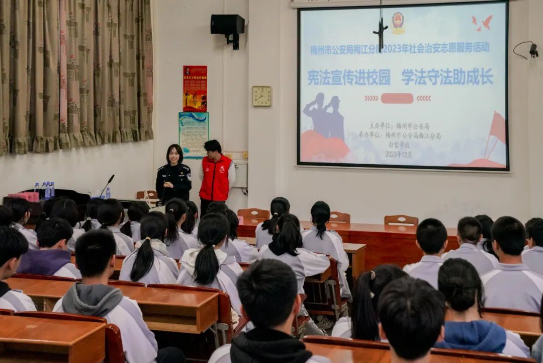 为进一步深化校园法治教育,不断增强青少年的法律意识和法治观念,12月7日下午,梅州市公安局梅江分局结合“宪法宣传周”,组织民警在白宫学校开展“宪法宣传进校园 学法守法助成长”宣传活动,积极营造良好的校园法治环境,切实为青少年健康成长保驾护航。