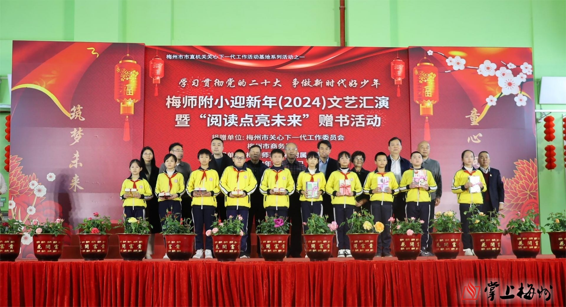 掌上梅州讯 12月28日,市关工委、市商务局联合到梅江区梅师附小开展“学习贯彻党的二十大,争做时代好少年”迎新年文艺汇演暨“阅读点亮未来”赠书活动。市关工委主任何正拔、副主任张剑平,市关工委副主任、市直关工委主任谢雪琼,市商务局局长李敏、机关党委书记李训等参加活动。