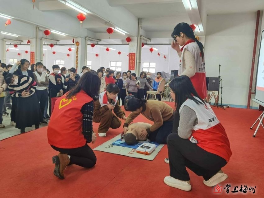 掌上梅州讯 1月5日下午,梅江区红十字会、梅江区三角镇三乡社区新时代文明实践站联合梅州市博爱应急救护培训中心在金利来(中国)有限公司开展“关爱生命 救在身边”应急救护宣讲培训,100多名企业员工参加。