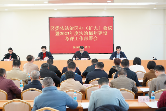 1月12日下午,梅江区召开区委依法治区办(扩大)会议暨2023年度法治梅州建设考评工作部署会。会议详细解读了《2023年度法治梅州建设考评办法》《2023年度法治梅州建设考评标准及细则》,并对考评工作作了具体部署。梅江区委副书记、政法委书记王增文参加会议。