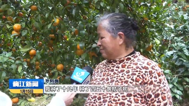 罗阿姨:我种了十几年,种有四、五十棵桔子树,今年有五、六千斤的产量,自己过来采摘的话3元左右一斤。