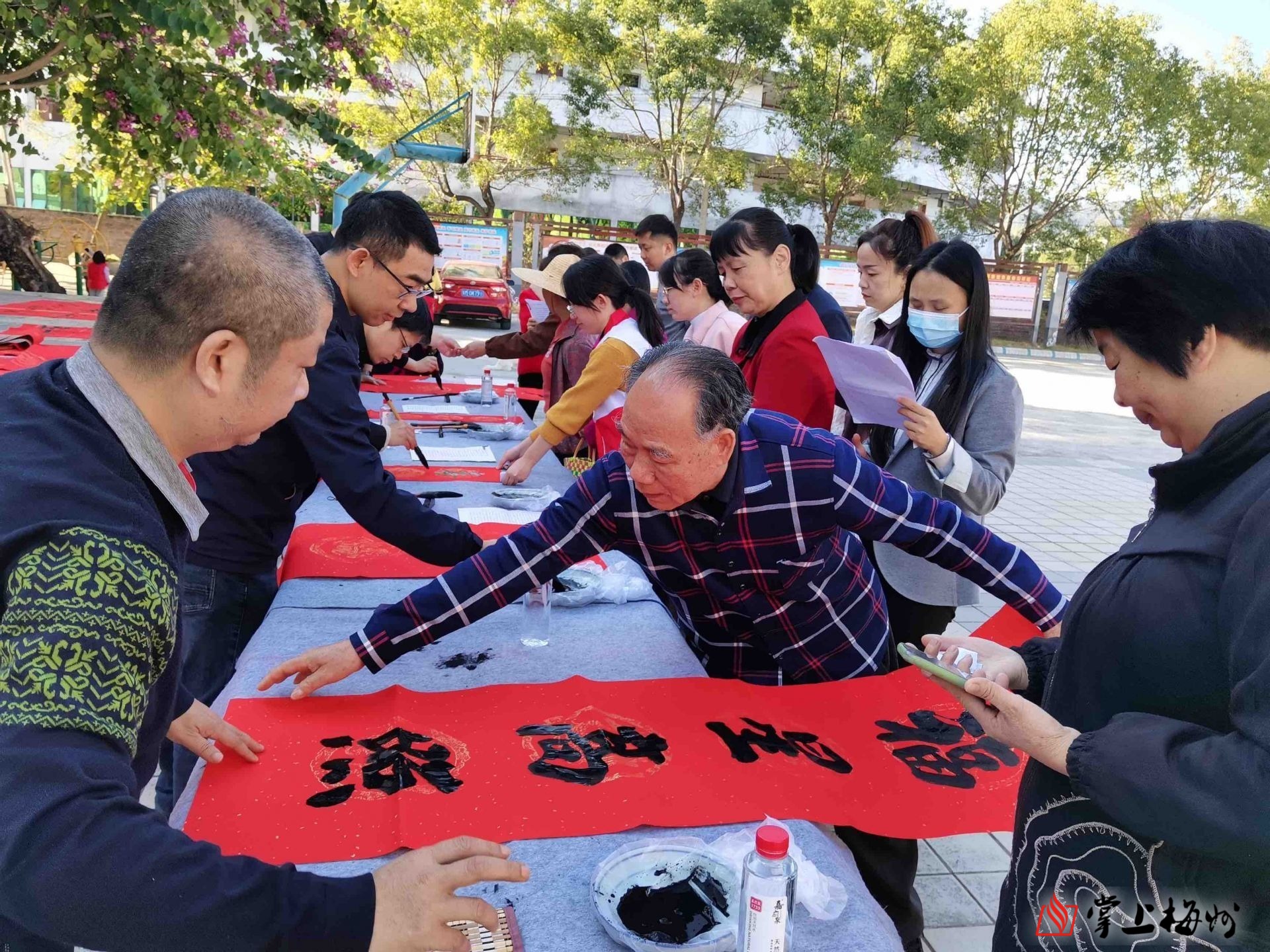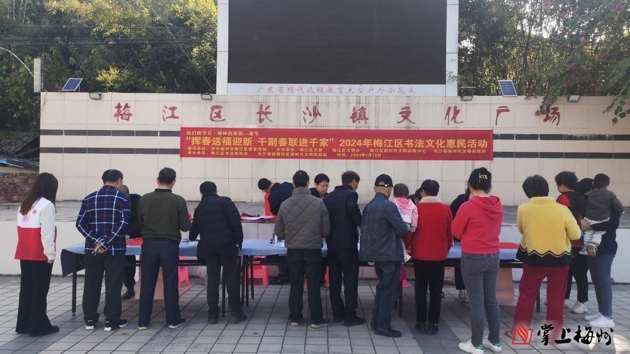 掌上梅州讯 1月19日,“挥春送福迎新 千副春联进千家”2024年书法文化惠民活动在梅江区长沙镇文化广场举办。6名书法家为群众手写春联、送祝福,把浓浓的关爱送给市民群众。