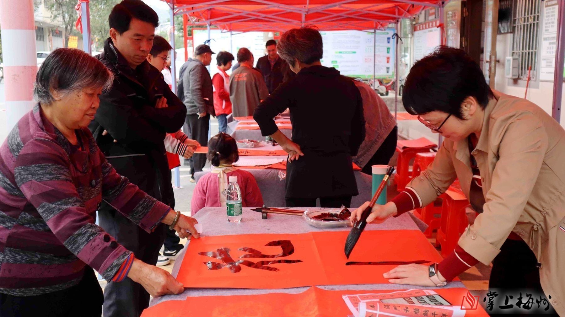 掌上梅州讯 “送‘福’啦!”1月20日上午9时许,“挥春送福迎新 千副对联进千家”2024年书法文化惠民活动在梅江区西阳镇白宫社区党群服务中心拉开帷幕。