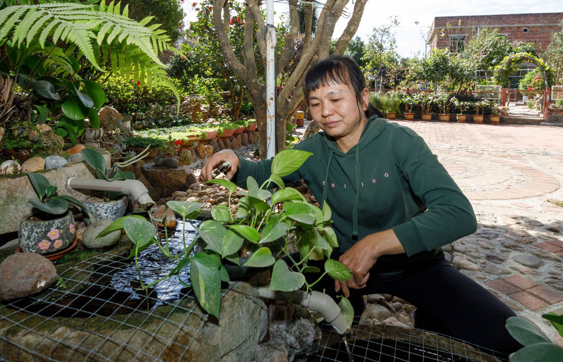 庭院内的每一棵植物都是由赖艳霞亲手打理。(林翔 摄)