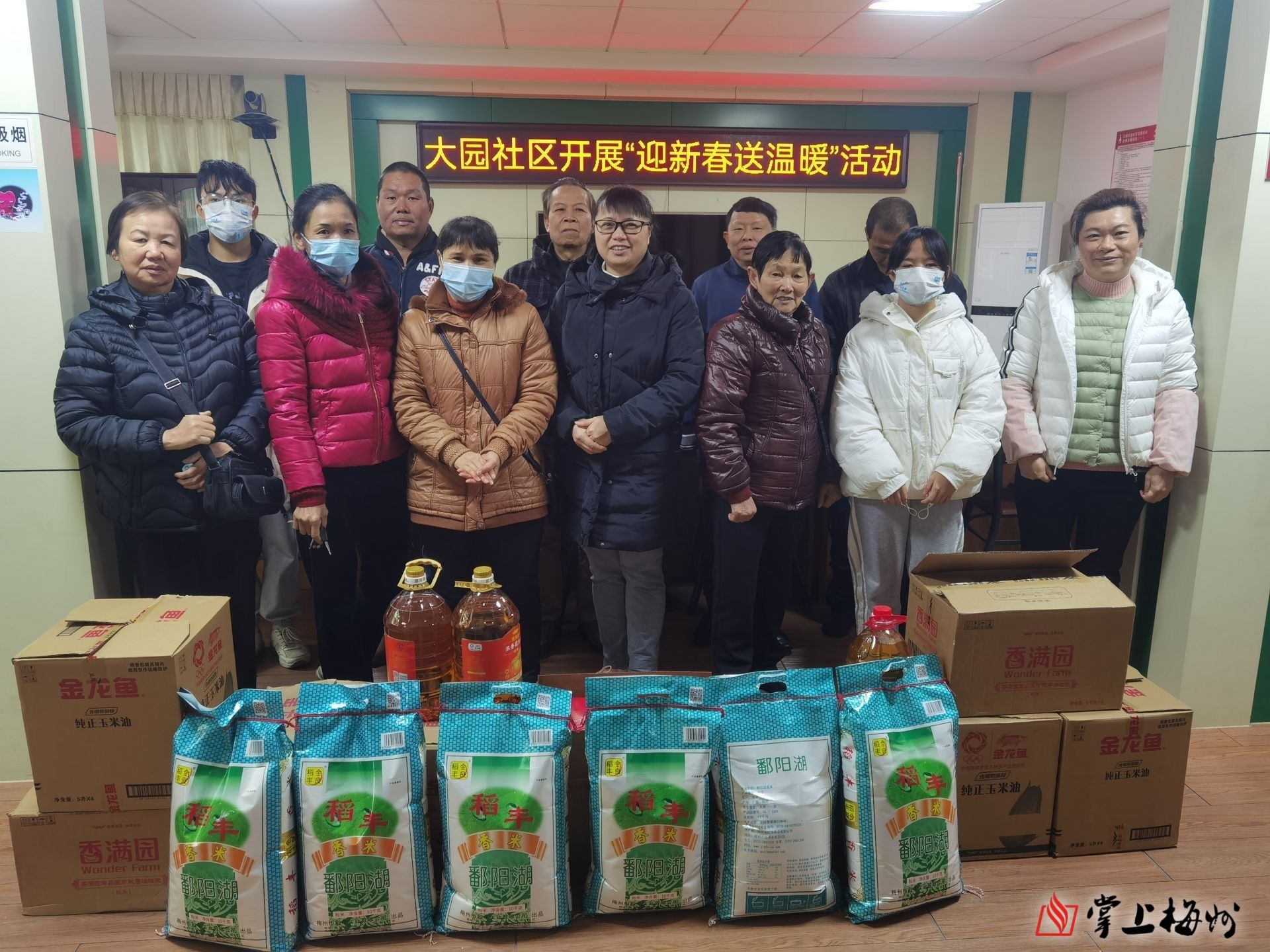 1月26日,梅江区江南街道大园社区在大园社区新时代文明实践站开展2024年“迎新春送温暖”活动,为辖区困难群众、党员、低保户共32户45人送上“新春关爱包”。据悉,这是该社区2024年新春慰问关爱系列活动的“重要环节”。活动现场为相关人员发放了新春关爱物资,随后社区工作人员入户开展慰问。