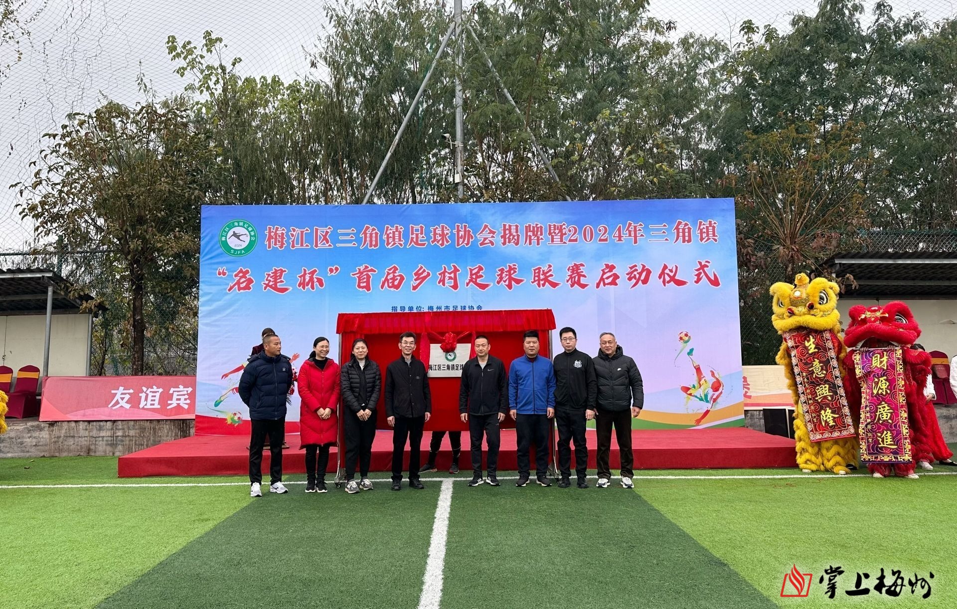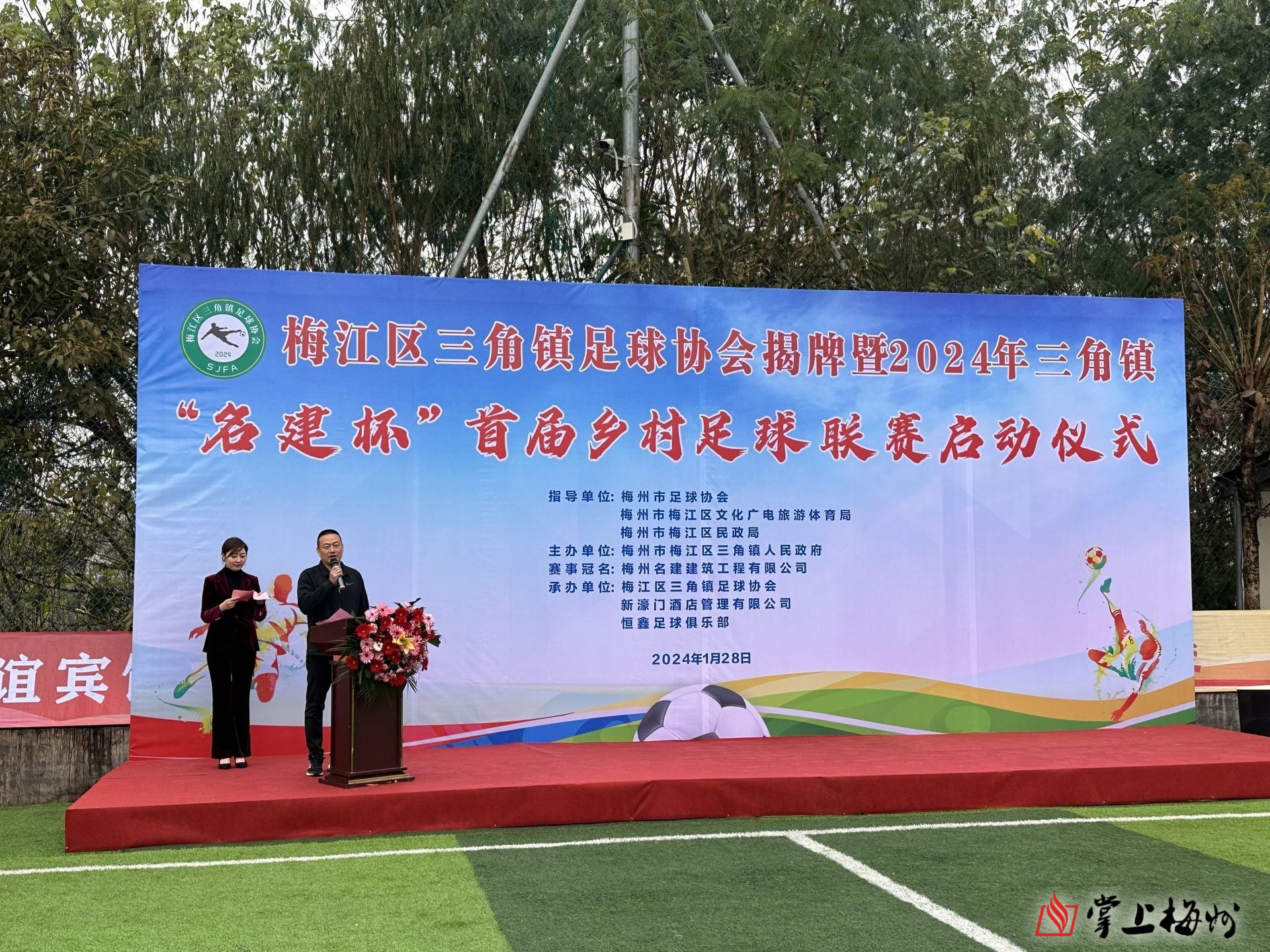 掌上梅州讯 1月28日下午,梅江区三角镇举行足球协会揭牌暨2024年三角镇“名建杯”首届乡村足球联赛启动仪式,来自三角镇13个村的足球代表队齐聚一堂,展开激烈角逐。