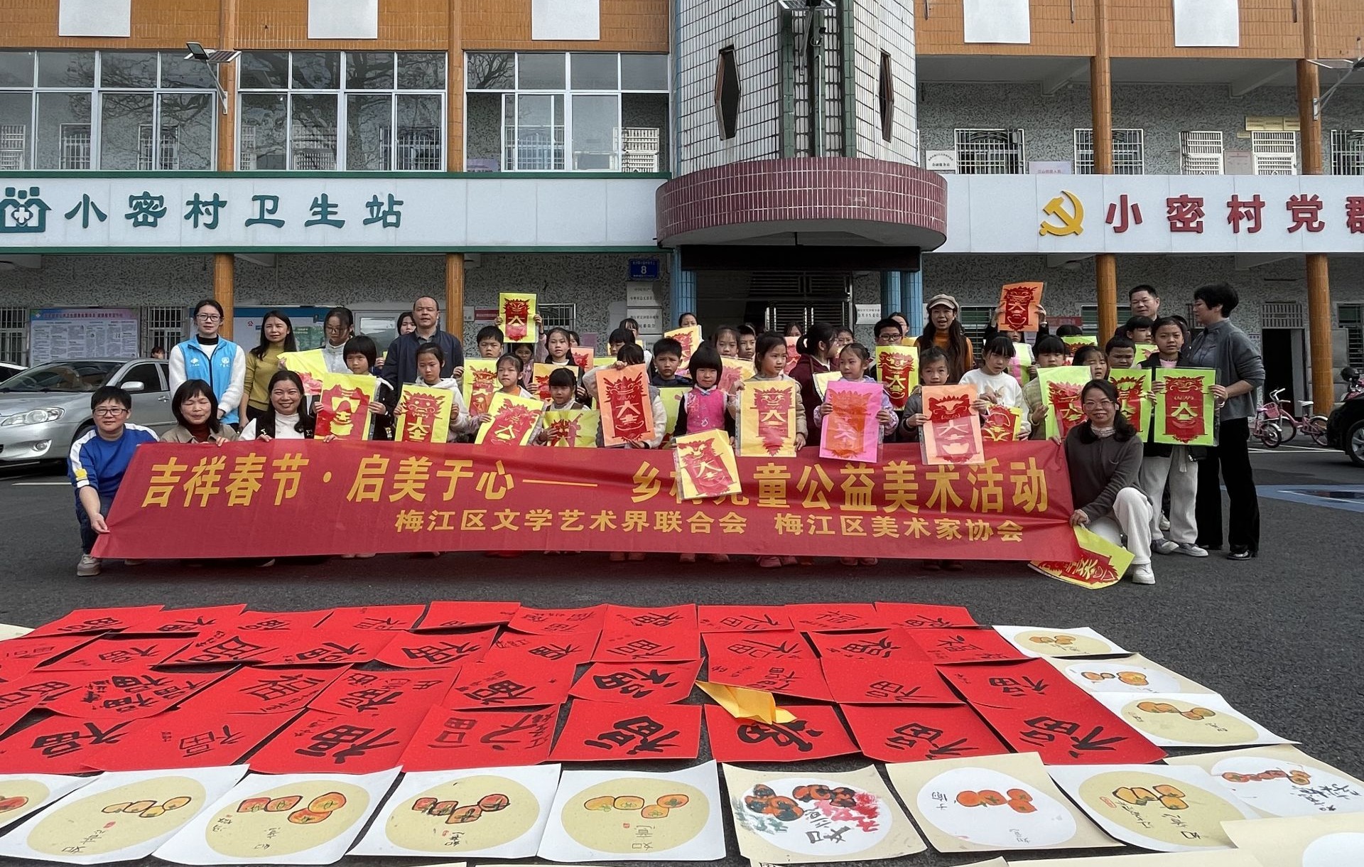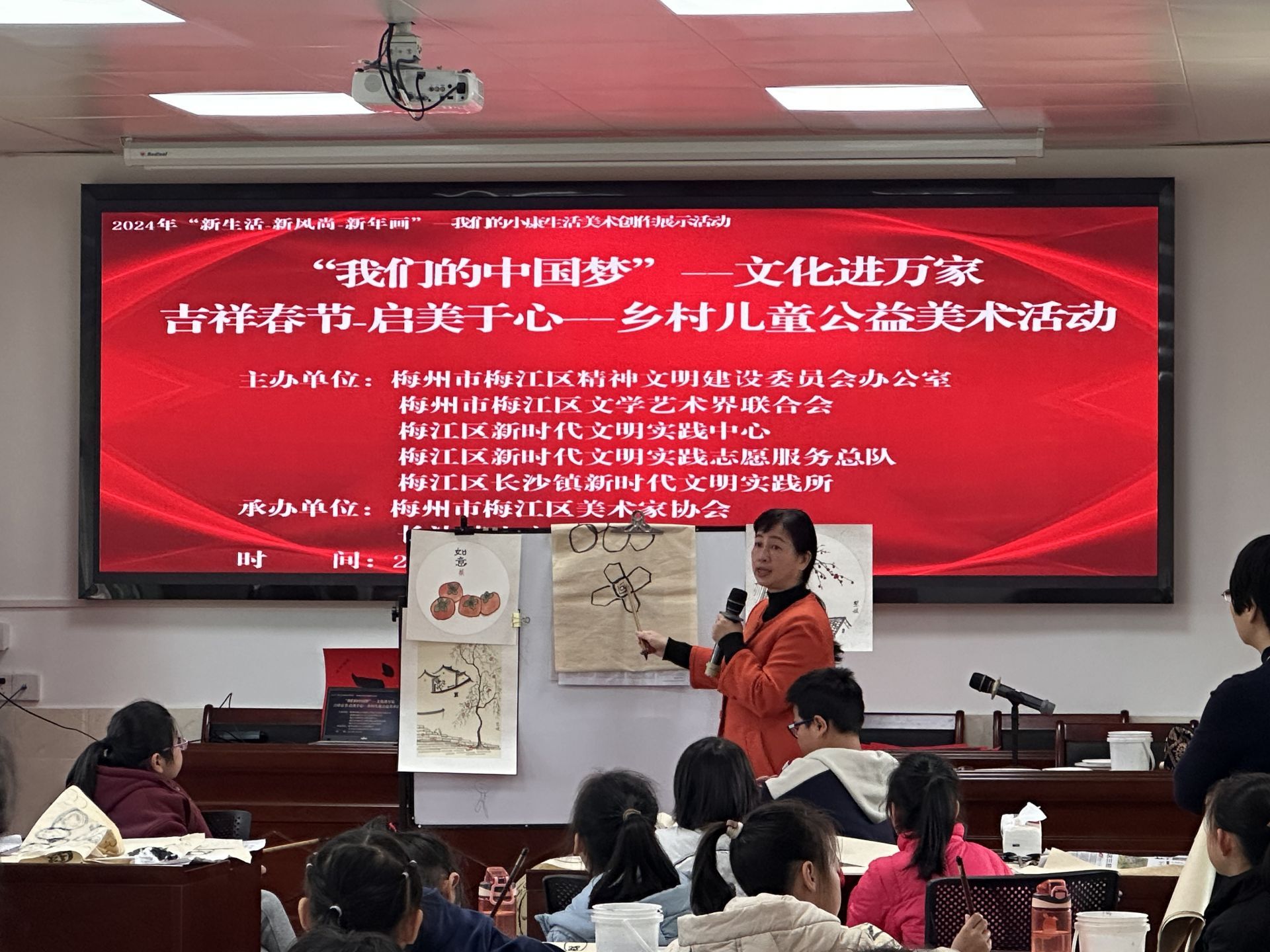 掌上梅州讯 龙年春节来临之际,梅江区文明办、区文联、区精神文明实践中心联合开展“新生活‧新风尚‧新年画”——我们的小康生活美术创作展示活动。围绕其中“绘新年画作品”要求,2024年1月30日至2月1日,组织梅江区美术家协会举办以“吉祥春节‧启美于心——乡村儿童公益美术活动”为主题的公益美术培训班。