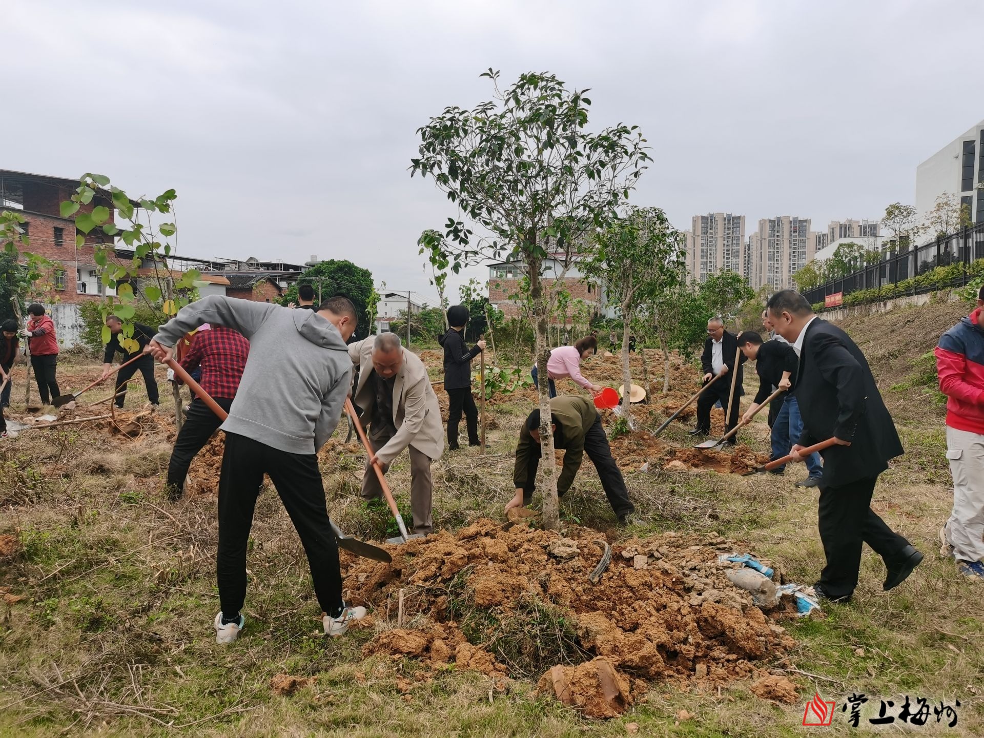 掌上梅州讯 为进一步团结和凝聚辖区广大社会力量,扎实推进绿美生态建设和乡村绿化工作,2月16日上午,梅江区西郊街道西区村召开共建绿色家园乡贤新春座谈会,并组织梅江区西郊人大代表团、西区村乡贤开展“植此美好 添绿西郊”系列植树活动。梅江区人大常委会副主任管文杰、区整治办主任陈颖通参加植树活动。