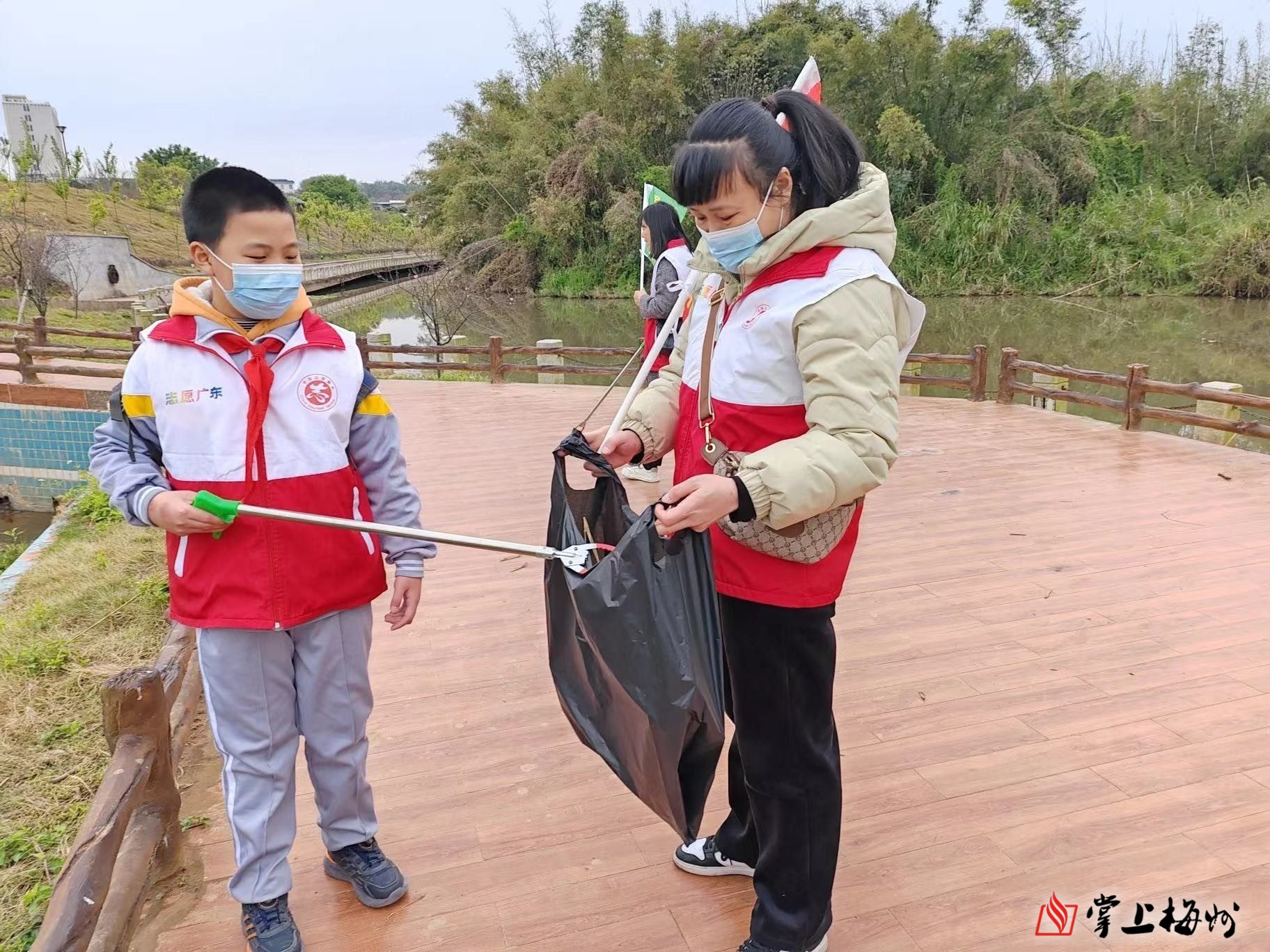 活动中,志愿者队伍沿着周溪十里梅花长廊一路前行。民间河长黄敏文沿途为亲子志愿者们讲解河流保护知识、生态环保的重要性以及雷锋精神故事,并为志愿者们展示水质测验化学试验,让家长和孩子们更直观地了解水质环境知识。随后,志愿者们沿着周溪村巡查水环境整治和水生态保护有关情况,用工具清理河道周边的废弃烟盒、纸屑、饮料瓶等垃圾和杂物,并向沿河商铺、群众宣传环保绿化知识,号召大家积极参与到绿美梅江生态建设中。