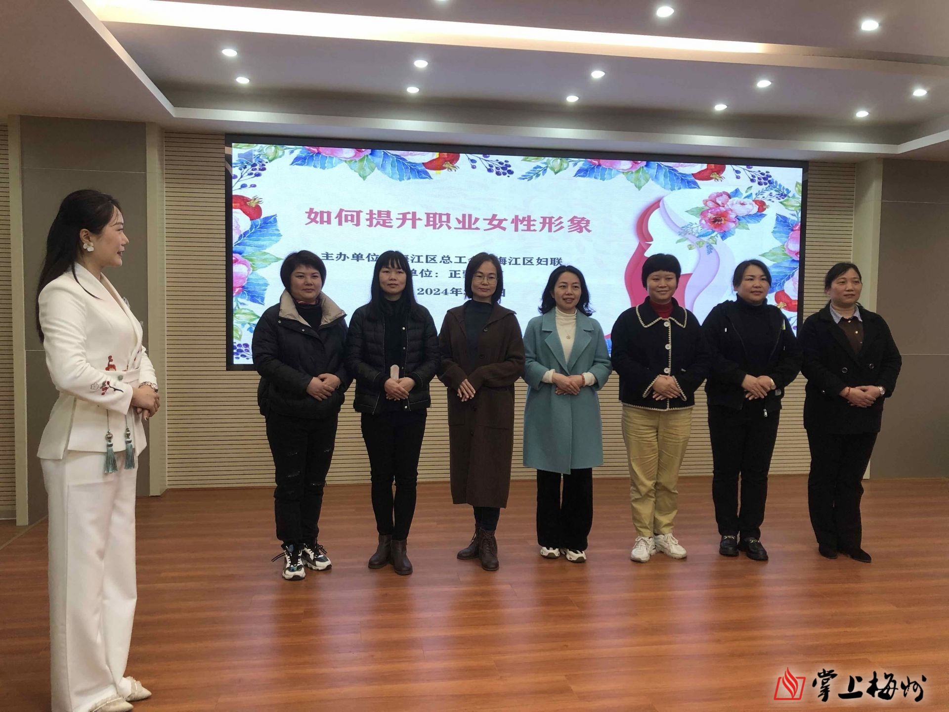 掌上梅州讯 3月9日,梅江区总工会、梅江区妇联联合开展“魅力女性,充实人生,幸福家庭”系列课程之《如何提升职业女性形象》,更好展现新时代广大女性巾帼风采,丰富女职工的业余精神文化生活,提升形象品位和基本礼仪素养。
