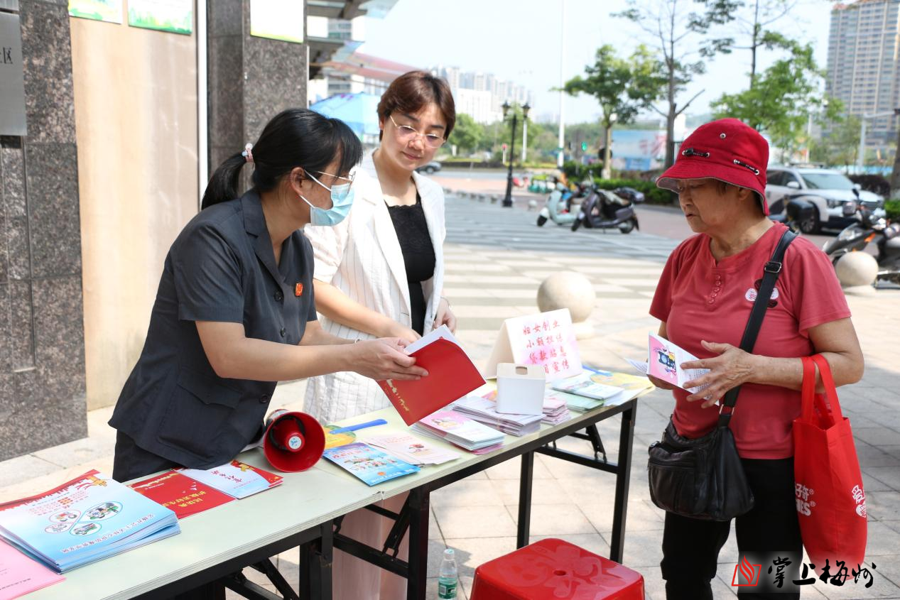 掌上梅州讯 4月16日上午,梅江区人民法院与梅江区妇女联合会在群福社区党群服务中心门口联合开展保护妇女儿童权益专题开放日活动,为市民提供专业法律咨询服务,普及与妇女儿童权益相关的法律知识。