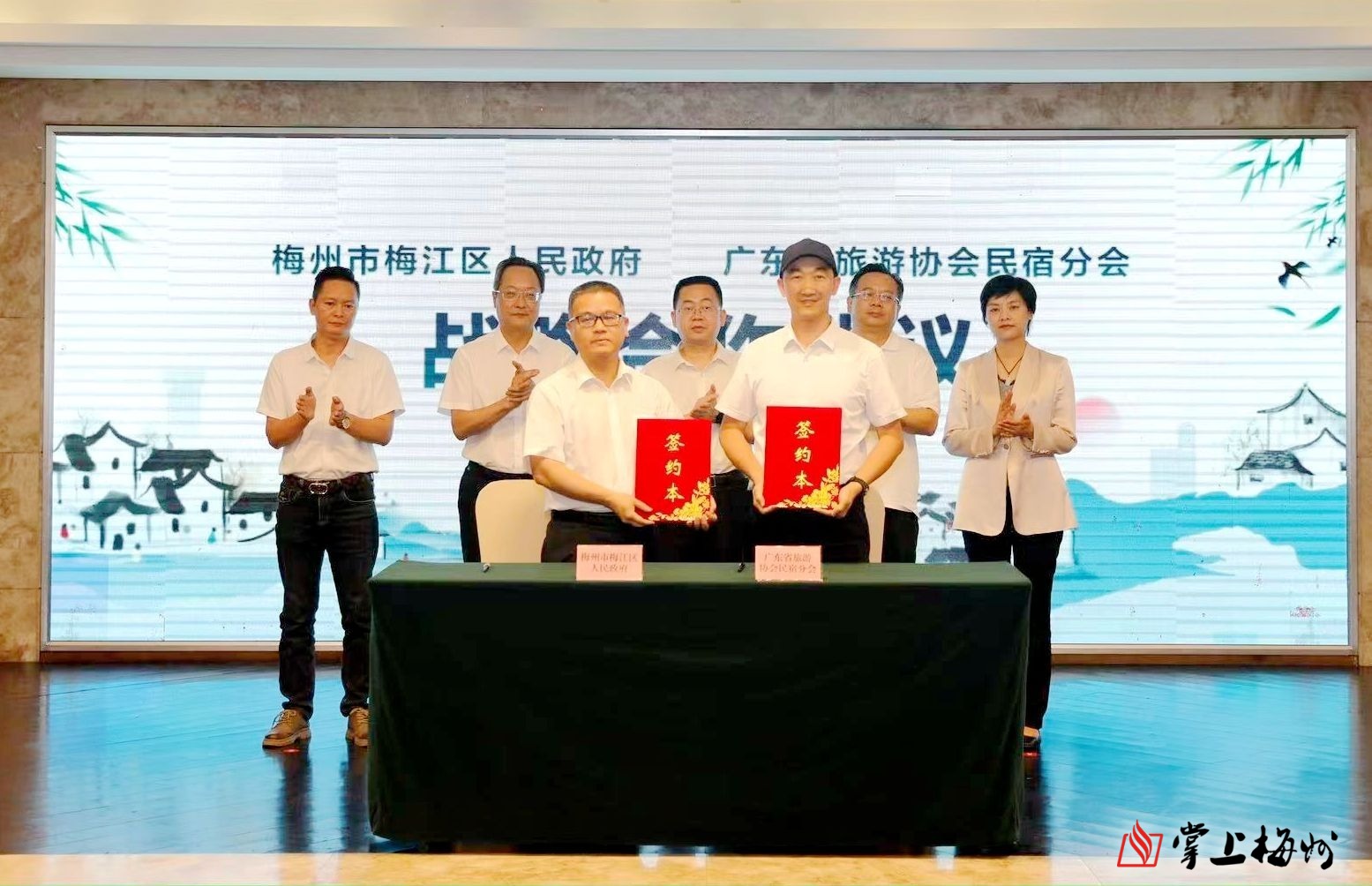活动还邀请了相关行业专家、企业经营者介绍开拓乡村酒店(民宿)项目的相关经验。梅江区人民政府与广东省旅游协会民宿分会签订了战略合作协议;向有关行业协会颁发“梅江区乡村酒店(民宿)招商服务中心”牌匾。同时,为进一步充实梅江民宿发展的专家力量,发挥智库作用,服务民宿发展,梅江区决定聘请9 位行业专家、知名民宿品牌创始人为梅江区乡村酒店(民宿)发展智库专家;聘请广东省旅游协会民宿分会为梅江区乡村酒店(民宿)发展智库机构。