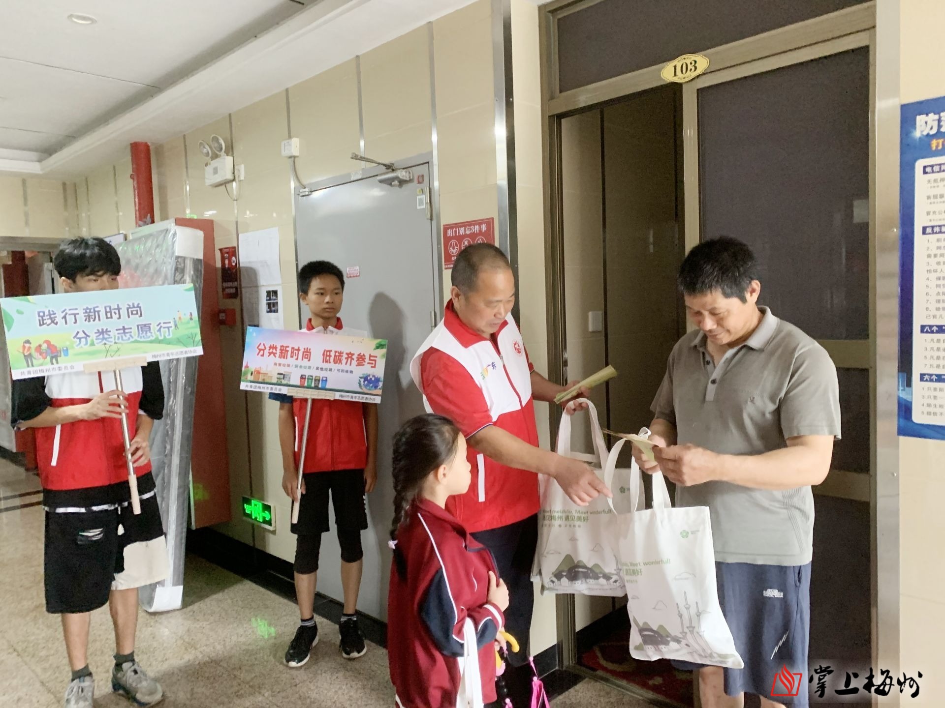 志愿者们开展“垃圾分类进万家”,深入居民群众家庭开展垃圾分类宣传工作,发放垃圾分类知识宣传单和环保袋,详细地讲解如何进行垃圾分类以及分类后如何处理等相关问题,并引导居民群众自觉开展生活垃圾分类,从自身做起、从点滴做起,树立绿色环保理念,培育健康生活方式。随后,志愿者们深入小区垃圾分类巡查活动,监督引导辖区居民做好垃圾分类工作。