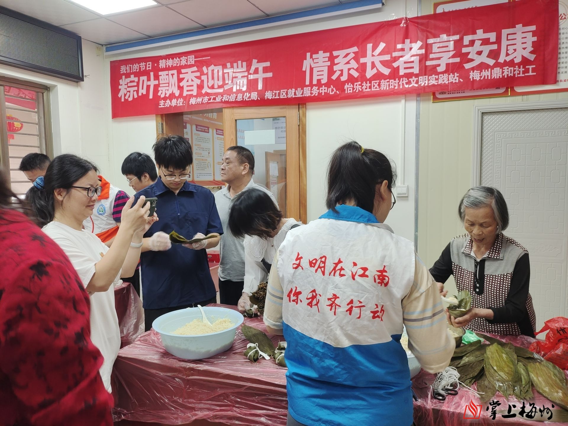 掌上梅州讯 6月4日上午,梅江区江南街道怡乐社区联合梅州市工业和信息化局、梅江区就业服务中心、怡乐社区新时代文明实践站、梅州鼎和社工开展我们的节日·精神的家园——“粽叶飘香迎端午 情系长者享安康”主题活动。