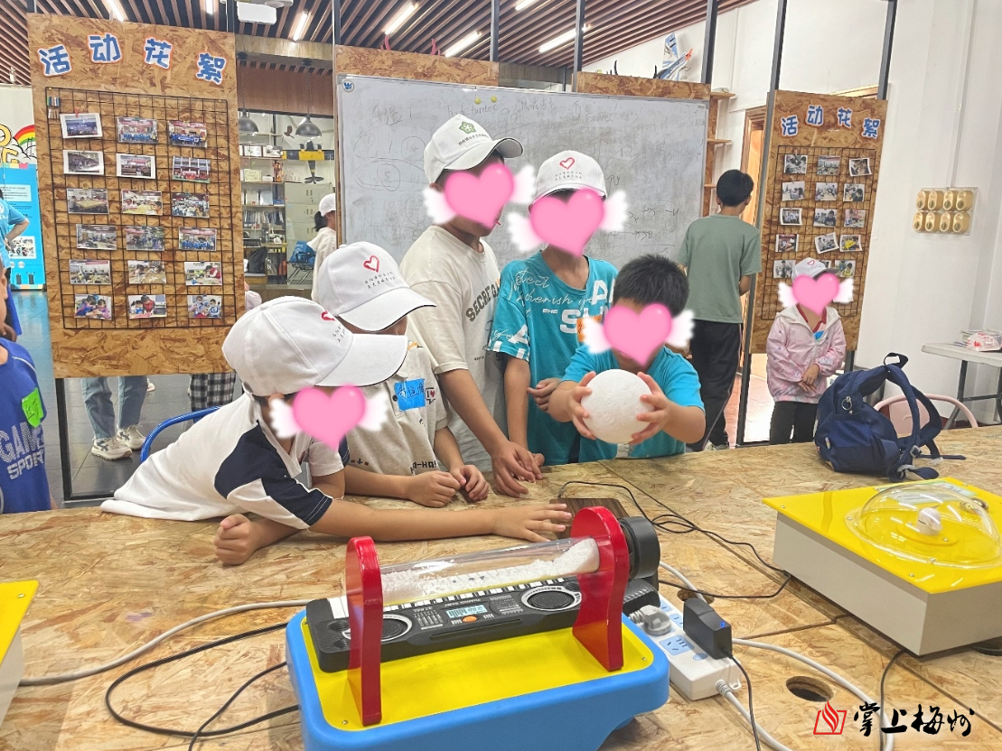 在梅县区科学馆,块状干冰遇上热水产生的神奇反应引发阵阵惊呼;模拟雷电、人体导电、雪浪声波、机械传动等实验展具则让孩子们跃跃欲试,想要一探其中的科学奥秘。