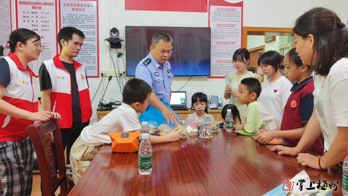 8月16日,“快乐人生 绿色无毒”主题宣传活动在白宫社区新时代文明实践站举行。禁毒小课堂上,来自梅江区禁毒办的志愿者和民警通过互动问答、播放宣传动画、近距离观察仿真毒品模型等形式,向参与活动的孩子和家长科普新型毒品的种类特征、吸毒的危害以及防范技巧等知识,引导未成年人提高禁毒、拒毒意识,自觉远离危险场所,安全、健康、快乐成长。