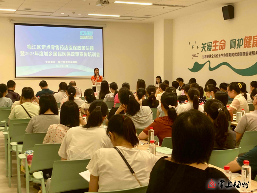 掌上梅州讯 8月27日,梅江区举办定点零售药店医保政策法规暨2025年度城乡居民医保政策宣传培训会,培训分上午、下午两场次进行,全区259家定点零售药店负责人参加培训。