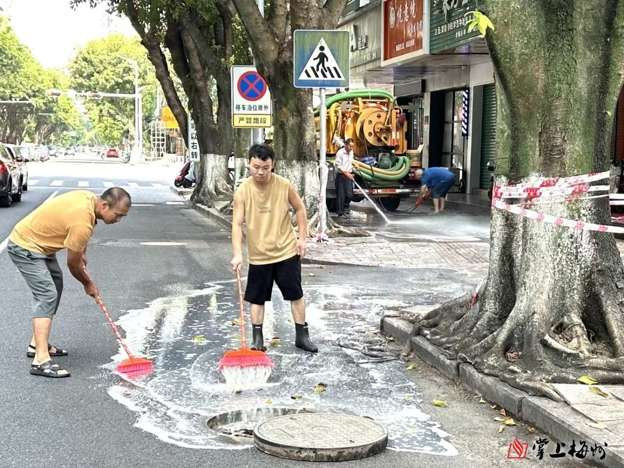8月27日上午,新中社区接到热心群众反映,梅龙西路丹枫雅苑门口一下水道口在大雨后有油污溢出路面,油污湿滑影响周边及过往群众通行。收到消息后,社区迅速组织网格员到现场,在四周拉起警戒线和设立温馨提示。经联系市政公司现场查看,确认系下水道堵塞,此下水道应由小区管理。由于该小区属无人管理小区,事急从权,社区干部立即联系专业疏通公司和中环洁公司,于当天中午对堵塞下水道进行高压疏通,中环洁派来水车冲水,社区干部和周边热心群众一起对路面清洗,恢复干净路面。小区住户和周边群众都为社区办事高效点赞。