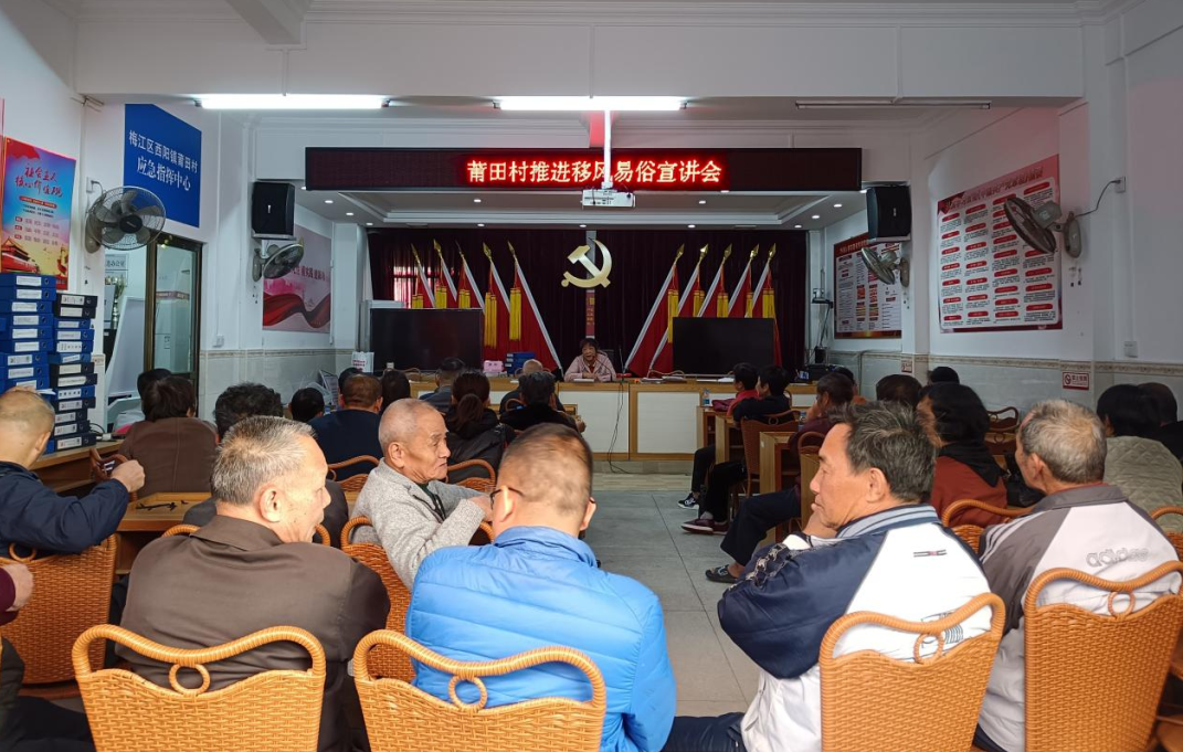 11月29日下午,中共梅江区委宣传部、梅江区民政局、梅江区精神文明建设办公室联合梅江区西阳镇新时代文明实践所在莆田村新时代文明实践站举行移风易俗宣讲会,莆田村“两委”干部、村民小组长、村民代表等30多人参加。