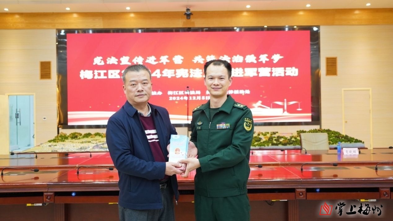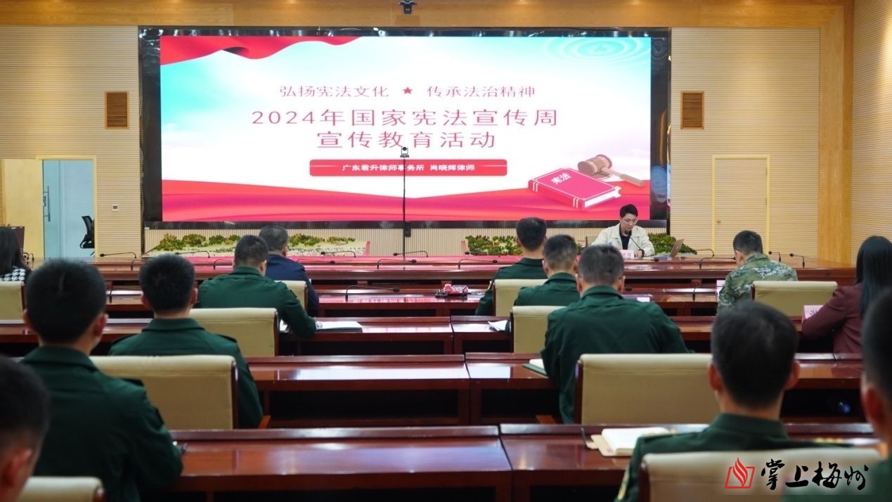 掌上梅州讯 今年12月4日是第十一个国家宪法日,也是第七个“宪法宣传周”。12月5日下午,梅江区普法办走进武警梅州支队,积极开展2024年“宪法宣传进军营 共筑法治强军梦”普法宣传活动。