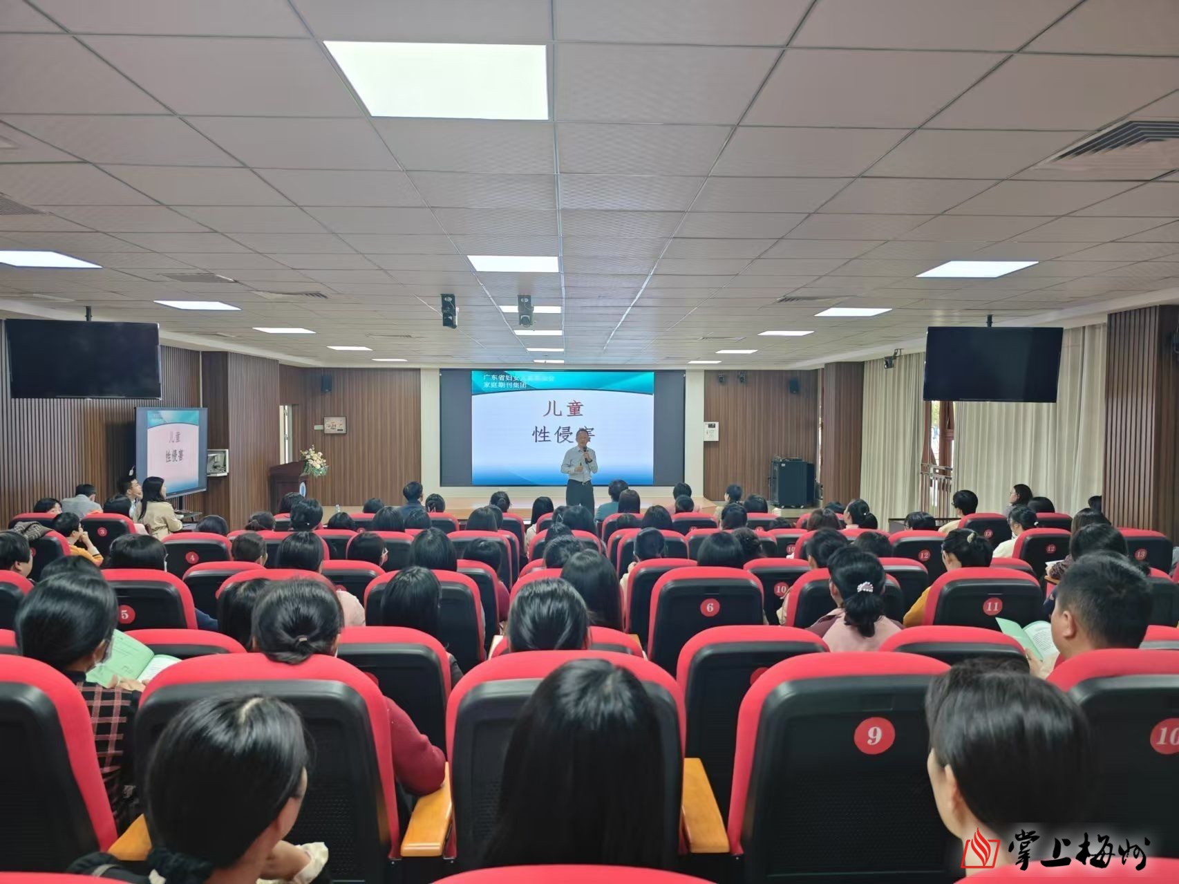 活动以由“为什么家庭需要重视防性侵教育”、“如何对孩子进行防性侵教育”、青春期孩子如何处理情绪压力,健康快乐成长等主题,邀请中国家庭教育学会专业委员会委员宋新嘉老师和广东省家庭教育研究会副秘书长、讲师团副团长叶亦芃老师为学校学生和家长讲授中学生青春期心理健康和儿童如何预防性侵知识,同时通过学生主演课堂剧《宵夜惊魂》,引导家长了解性教育缺失、陪伴缺失等对儿童的危害,要注重培养青少年如何正确对待青春期出现的情绪压力,学会自我保护、学会释放压力,帮助青少年提升情绪管理和时间管理的能力。