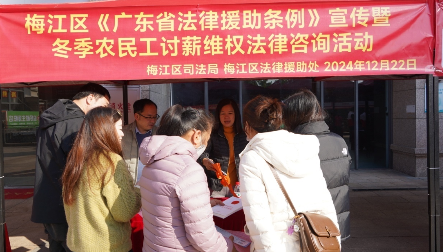 近年来,梅江区法律援助处大力宣传《中华人民共和国法律援助法》《广东省法律援助条例》等法律法规,有效提高了法律援助的社会知晓率,通过探索“法律援助+支持起诉+司法救助+司法鉴定费用减缓”等模式,为进城务工人员、农民工、老年人、妇女、未成年人等特殊群体开通法律援助绿色通道,实现“应援尽援、应援优援”,切实解决受援群众诉讼难、缴费难等实际困难,为维护困难群众合法权益作出了积极的贡献。