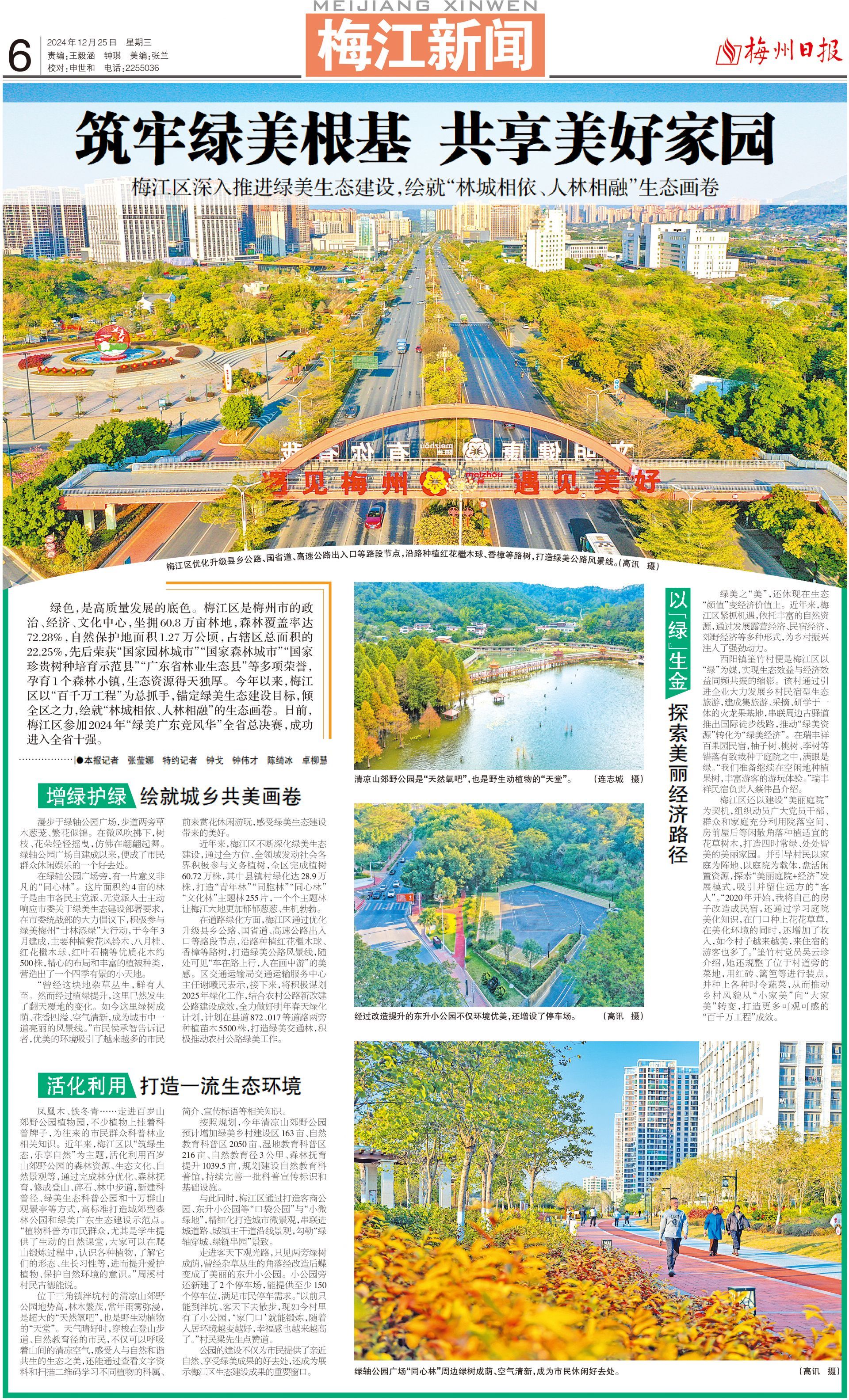 绿色,是高质量发展的底色。梅江区是梅州市的政治、经济、文化中心,坐拥60.8万亩林地,森林覆盖率达72.28%,自然保护地面积1.27万公顷,占辖区总面积的22.25%,先后荣获“国家园林城市”“国家森林城市”“国家珍贵树种培育示范县”“广东省林业生态县”等多项荣誉,孕育1个森林小镇,生态资源得天独厚。今年以来,梅江区以“百千万工程”为总抓手,锚定绿美生态建设目标,倾全区之力,绘就“林城相依、人林相融”的生态画卷。日前,梅江区参加2024年“绿美广东竞风华”全省总决赛,成功进入全省十强。