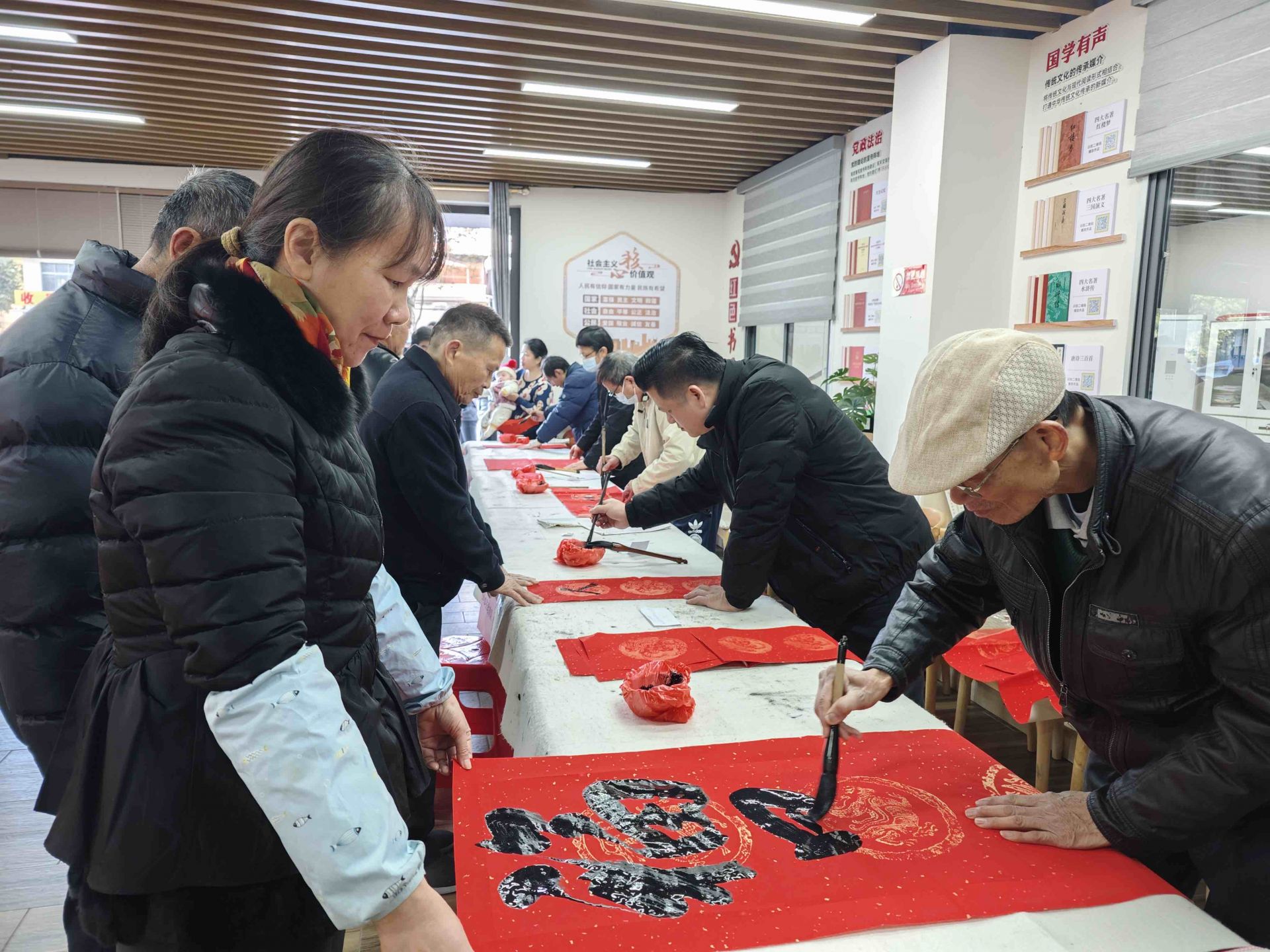 梅江区三角镇墟镇社区联合区委宣传部、区文联、梅江开放大学、区书法家协会,邀请梅江开放大学老年教育书法教师、学员在墟镇社区新时代文明实践站开展“挥春送福迎新年 砥砺前行‘百千万’”挥春送福活动,营造喜庆热闹、文明祥和的节日氛围。