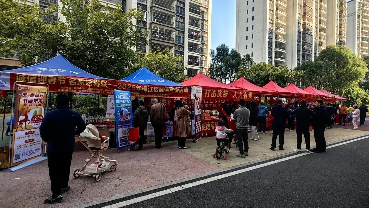 掌上梅州讯 1月19日上午,梅江区发展和改革局联合梅江区司法局、金山街道盘龙社区党总支、梅州市碧桂园联合党支部、中国移动通信广东有限公司梅州城区公司、中国工商银行梅州梅江分行、中国平安财产保险股份有限公司梅州中心支公司在东山谷碧桂园开展“诚信迎春节·名家送春联”2025年梅江区诚信宣传活动,以春节前送祝福为契机,以春联为载体,邀请书法家、书法爱好者为社区居民、个体工商户写春联,让诚信深入人心,让祝福走进万家。