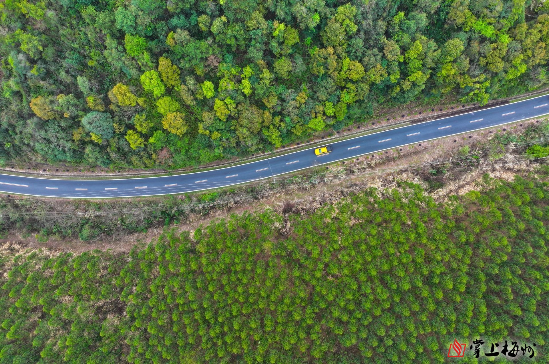 X950线西阳镇路段,平坦的沥青公路铺设在绿树青山间。(林翔 摄)