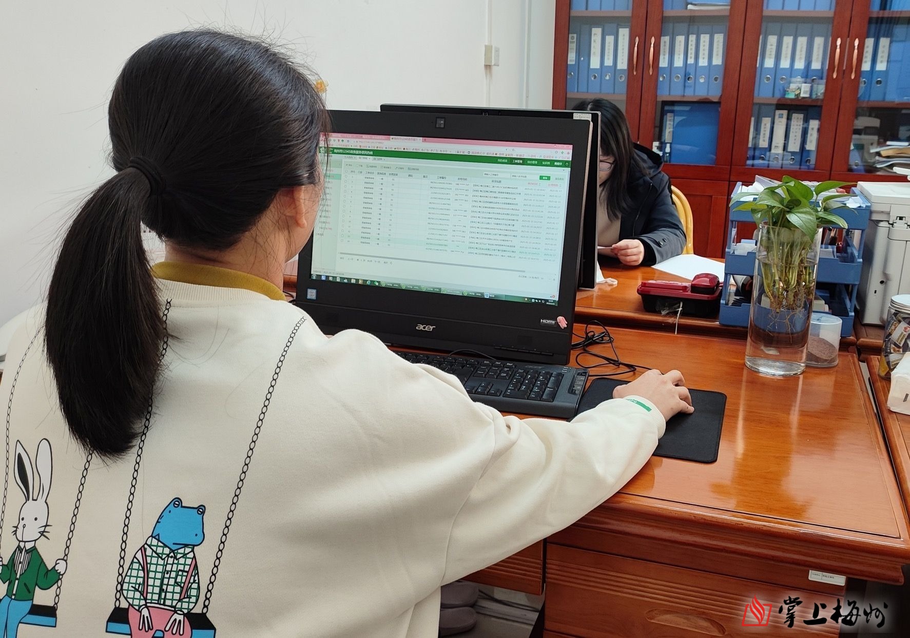 工作人员以最快速度对派送工单进行处理。(梅江区政务局供图)