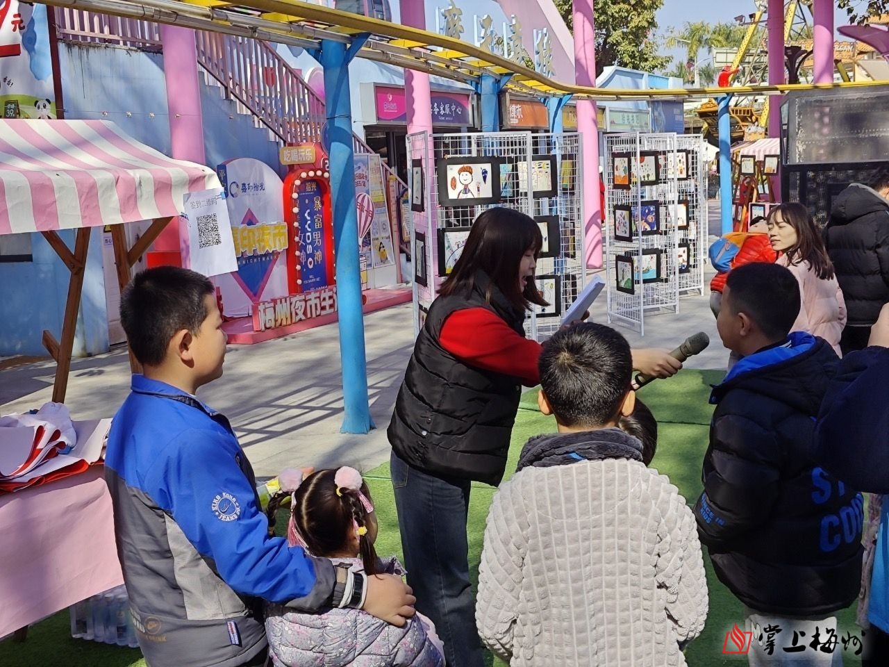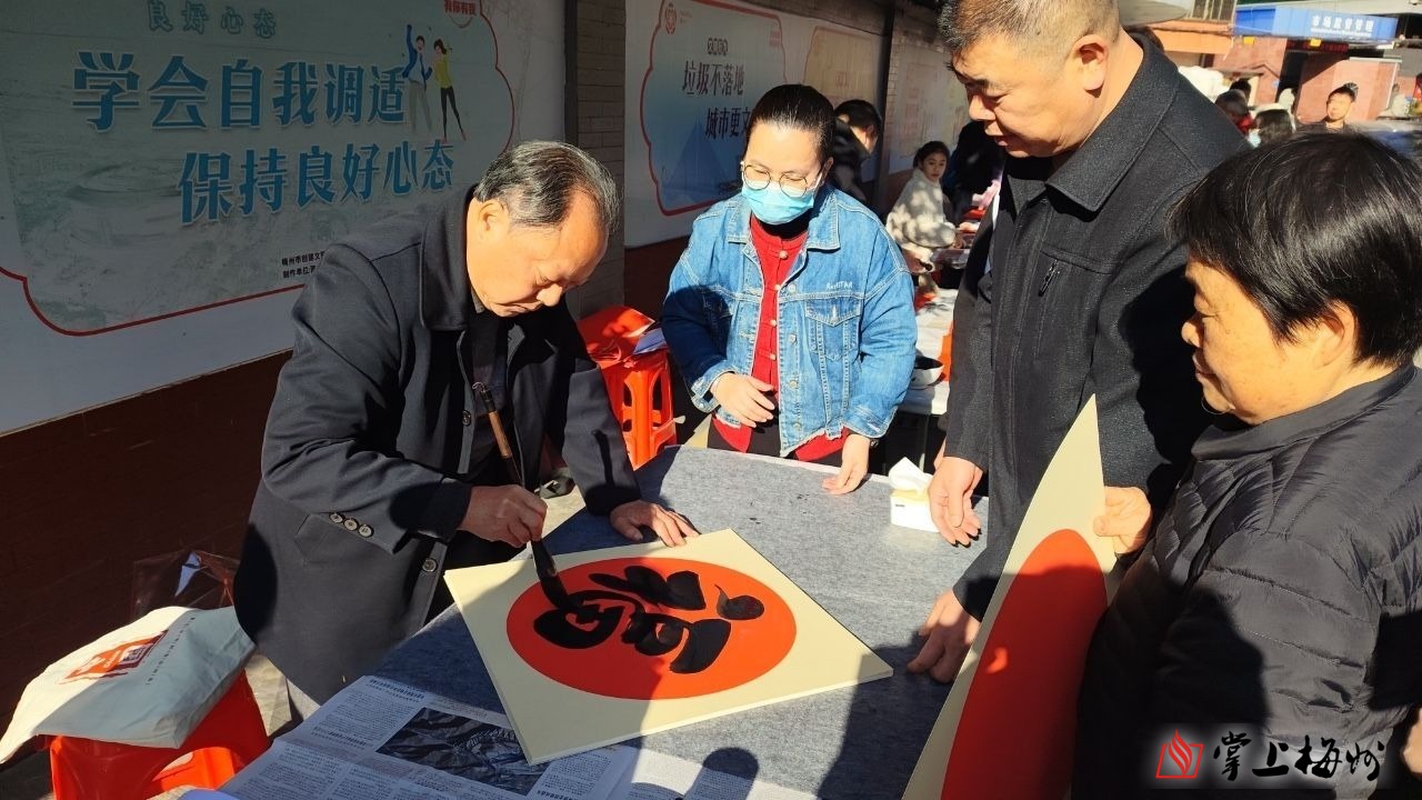 日前,梅江社区、白马社区、梅龙社区、新中社区、凤尾社区等5个社区新时代文明实践站联合在嘉印拾光乐园举办了一场别开生面的迎新春游园活动。活动邀请了书法家为市民免费书写春联,现场还设置了创意春联展示区、美育进社区项目成果展示区和有奖知识问答区,活动现场热闹非凡。在新春有奖知识问答区里,市民群众踊跃作答。一位市民对工作人员说:“你好,这道题选B,移风易俗的实质是破除陈规陋习。”“答对了!”工作人员为作答市民送上一份精美礼品。