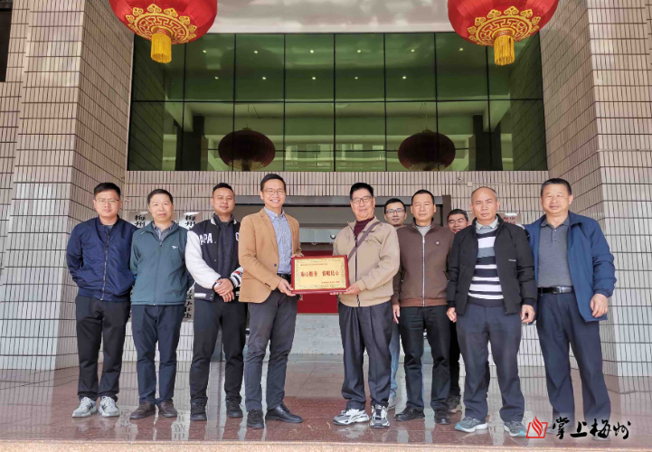 掌上梅州讯 近日,梅江区金山街道防疫站宿舍的居民代表侯叔,带着一面写着“贴心服务 情暖民心”的金色牌匾来到金山街道办事处。这块牌匾承载着居民们满满的感激,是对金山街道老旧小区改造工作的高度认可。金山街道党工委副书记、办事处主任黄钧豪,党工委委员凌锴郑重接过牌匾,这一场景见证了小区居民与街道携手共建美好家园的深厚情谊。
