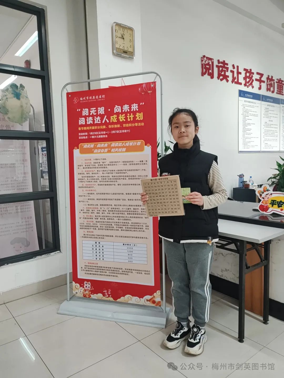 “阅读存折”小户主们来到图书馆参加积分兑换、存折换新、双倍积分等春节活动。小读者们欢欣雀跃地凭着阅读成果,在图书馆里分享着彼此的收获,并表示新的一年要常来图书馆借阅,让自己的存折积累更多分。