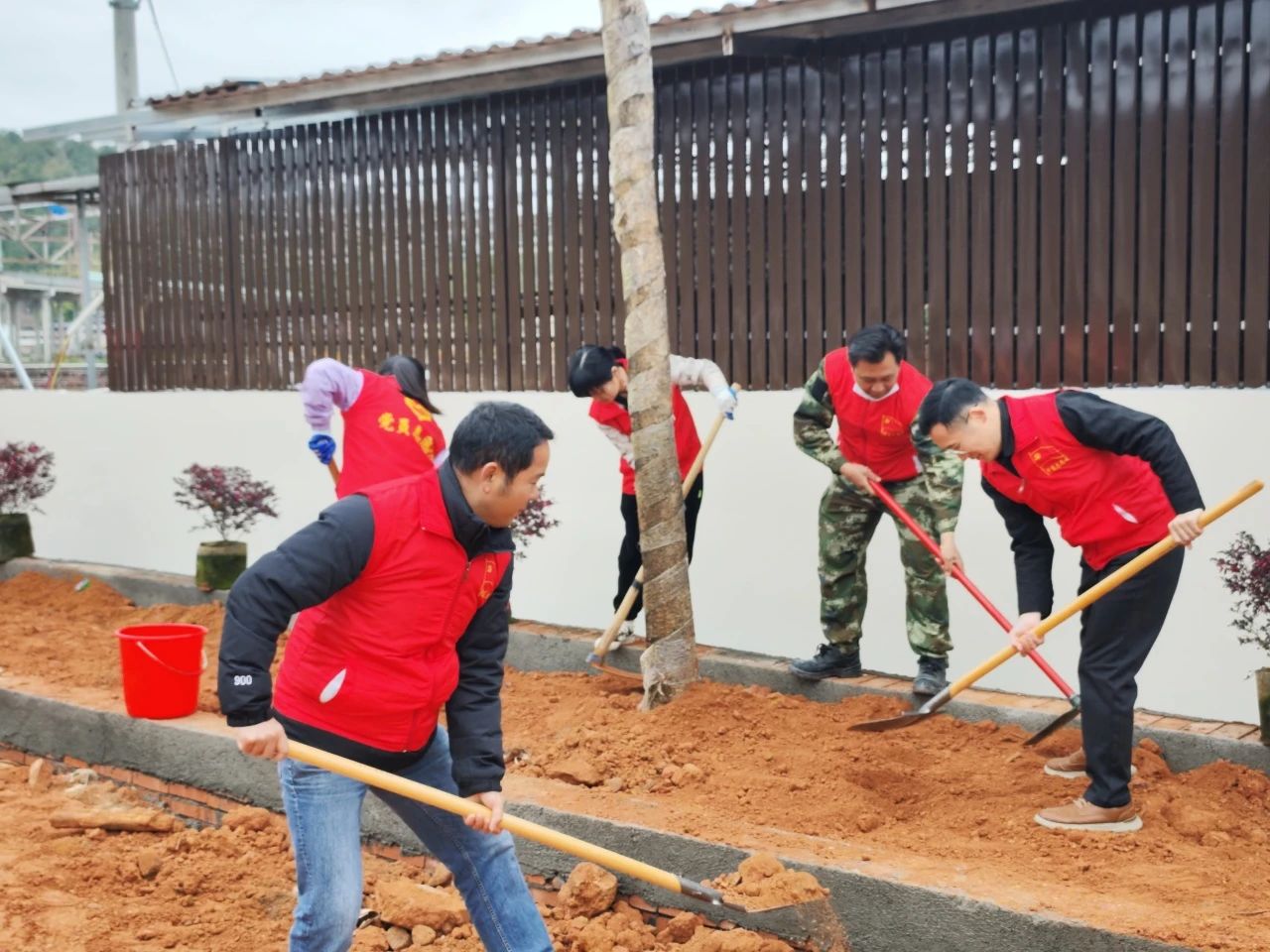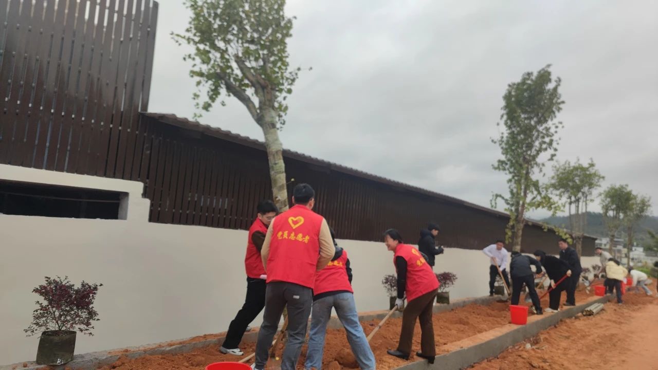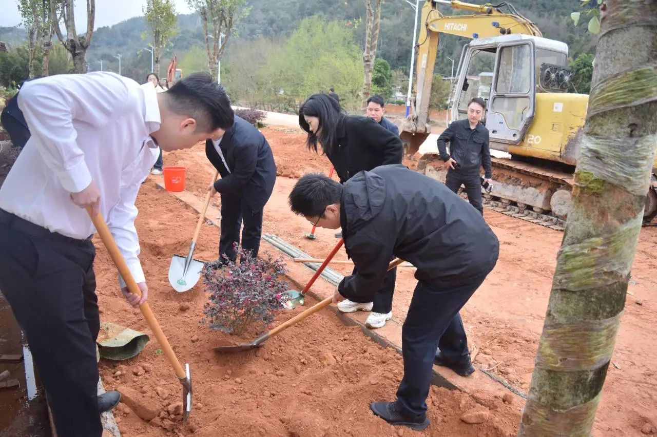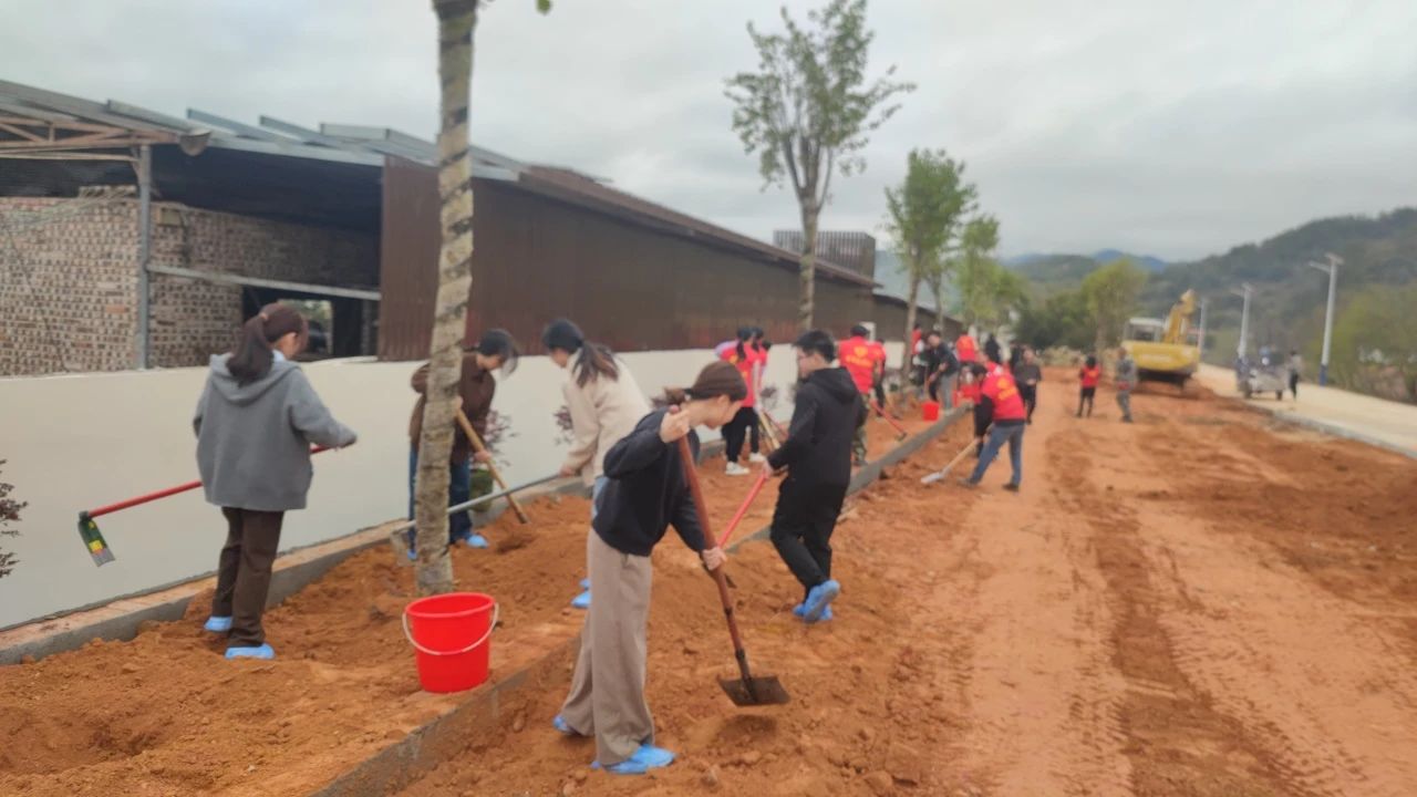 植树现场,众人热情高涨。大家纷纷挥锹铲土、扶苗浇水,每一棵树苗都承载着对未来生态环境的美好期许。一株株紫荆、红花继木树苗在大家齐心协力下扎根泥土,整齐排列,为四平村勾勒出一片生机勃勃的新绿,更彰显了青年一代对生态保护与绿色发展的积极践行。