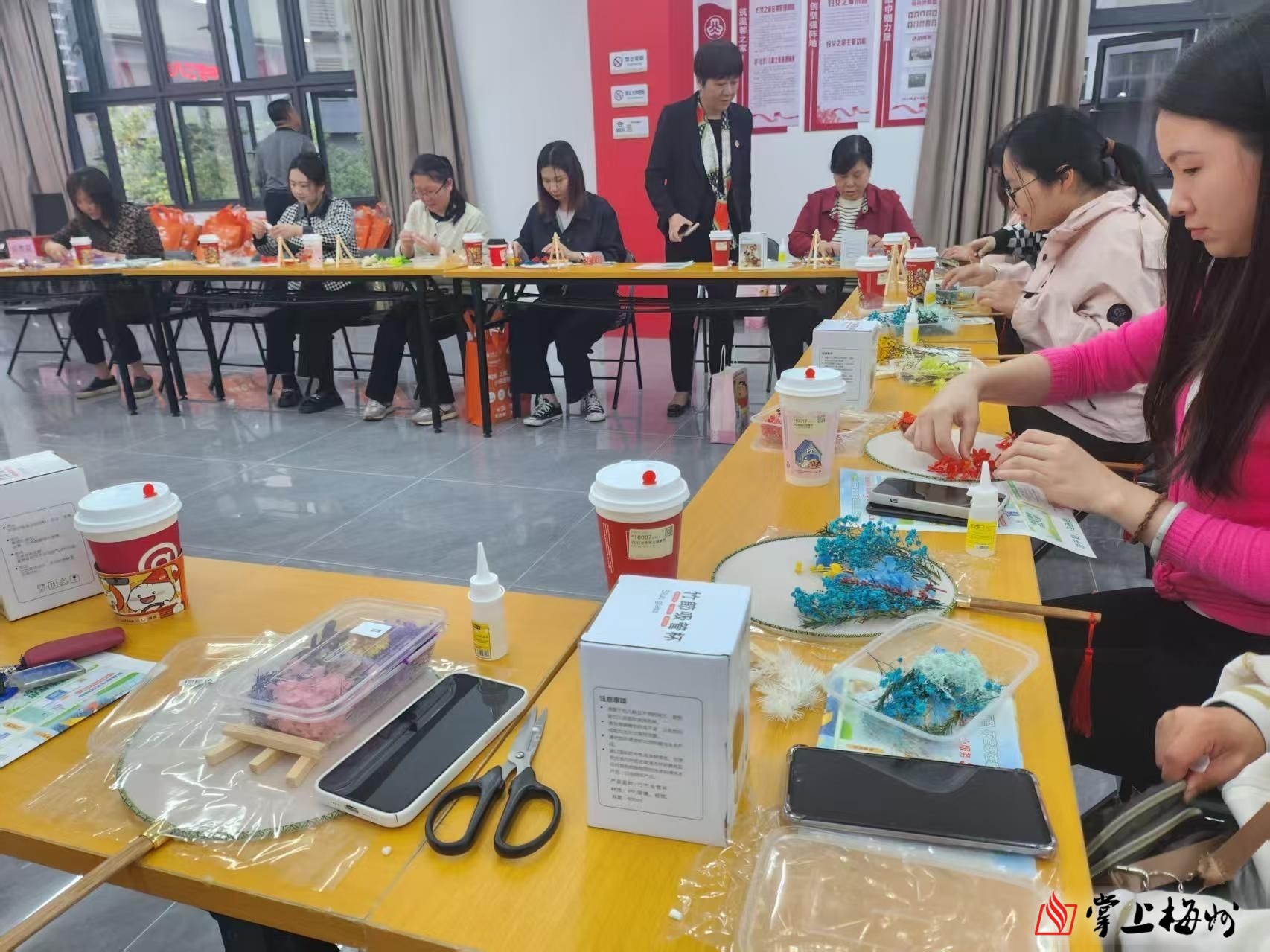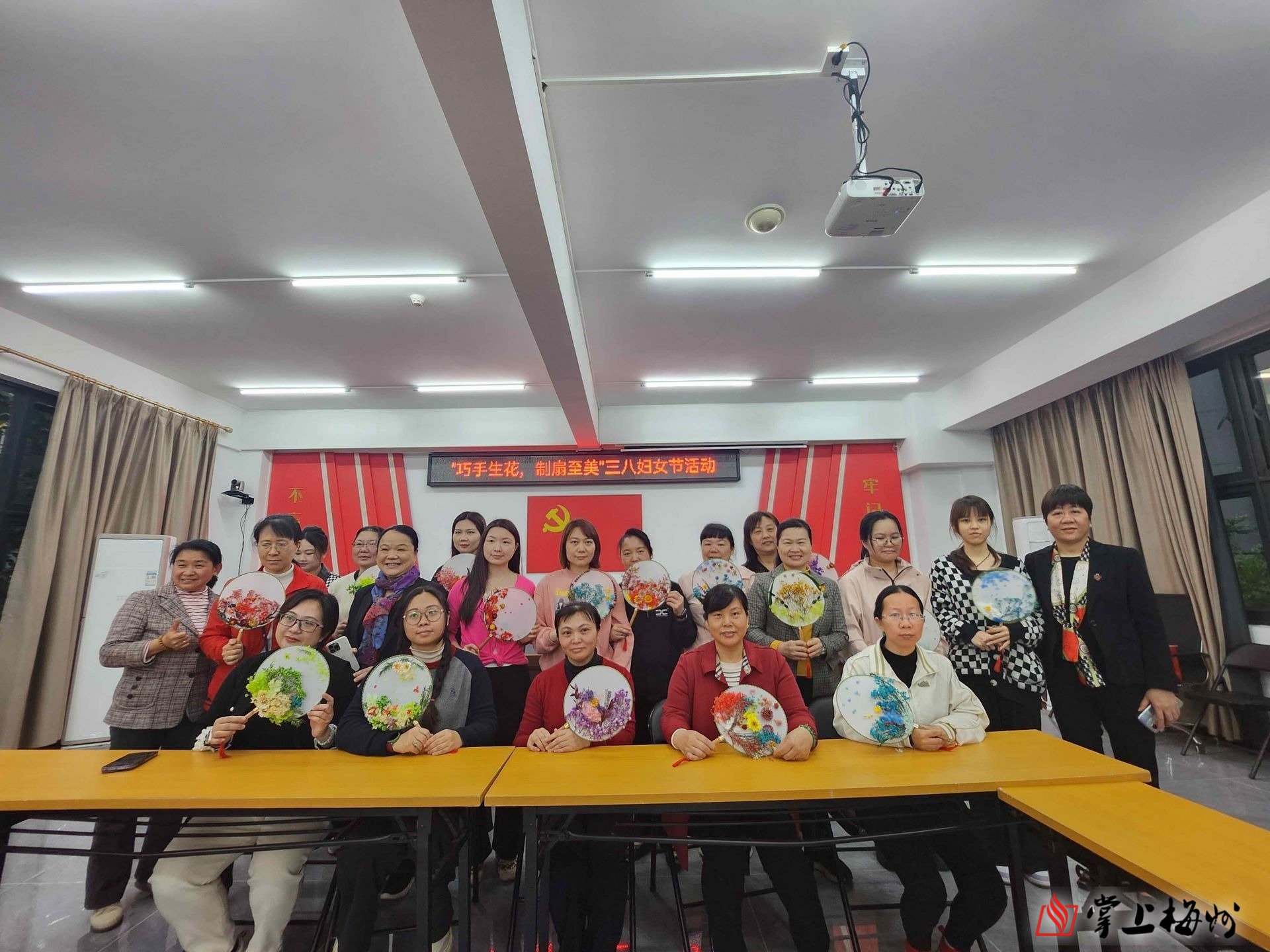 掌上梅州讯 3月4日上午,梅江区三角镇美景社区联合广东广电网络梅州分公司、梅江区工商业联合会、合众人寿保险股份有限公司梅州中心支公司,以“巧手生花,制扇至美”为主题,组织辖区女性居民开展非遗团扇DIY活动。活动通过亲手制作团扇,展现女性巧思与艺术创造力,传递节日祝福,共20余名女性参与。