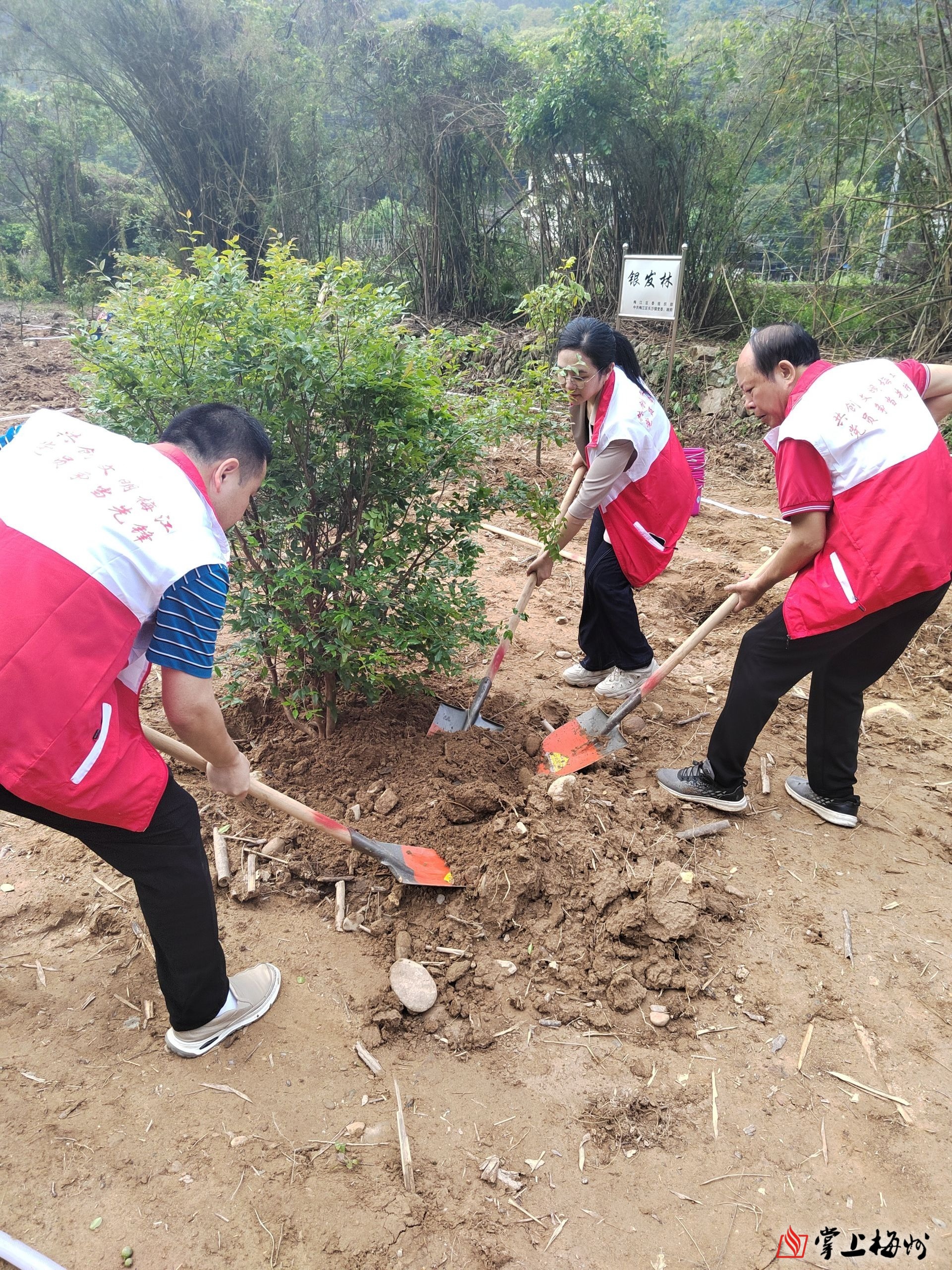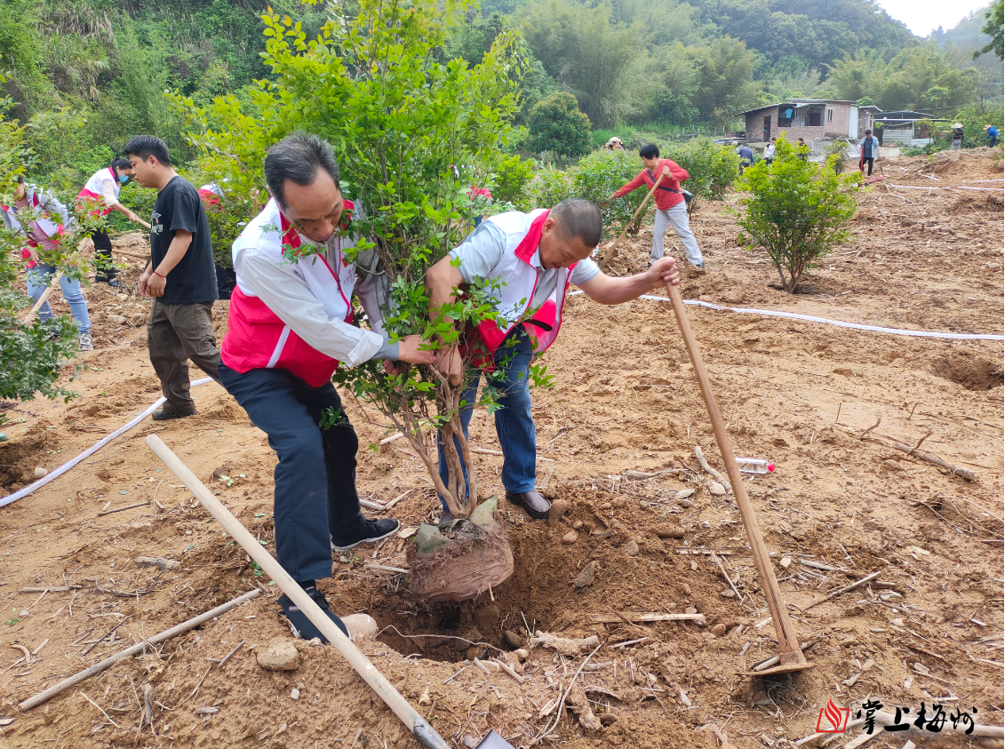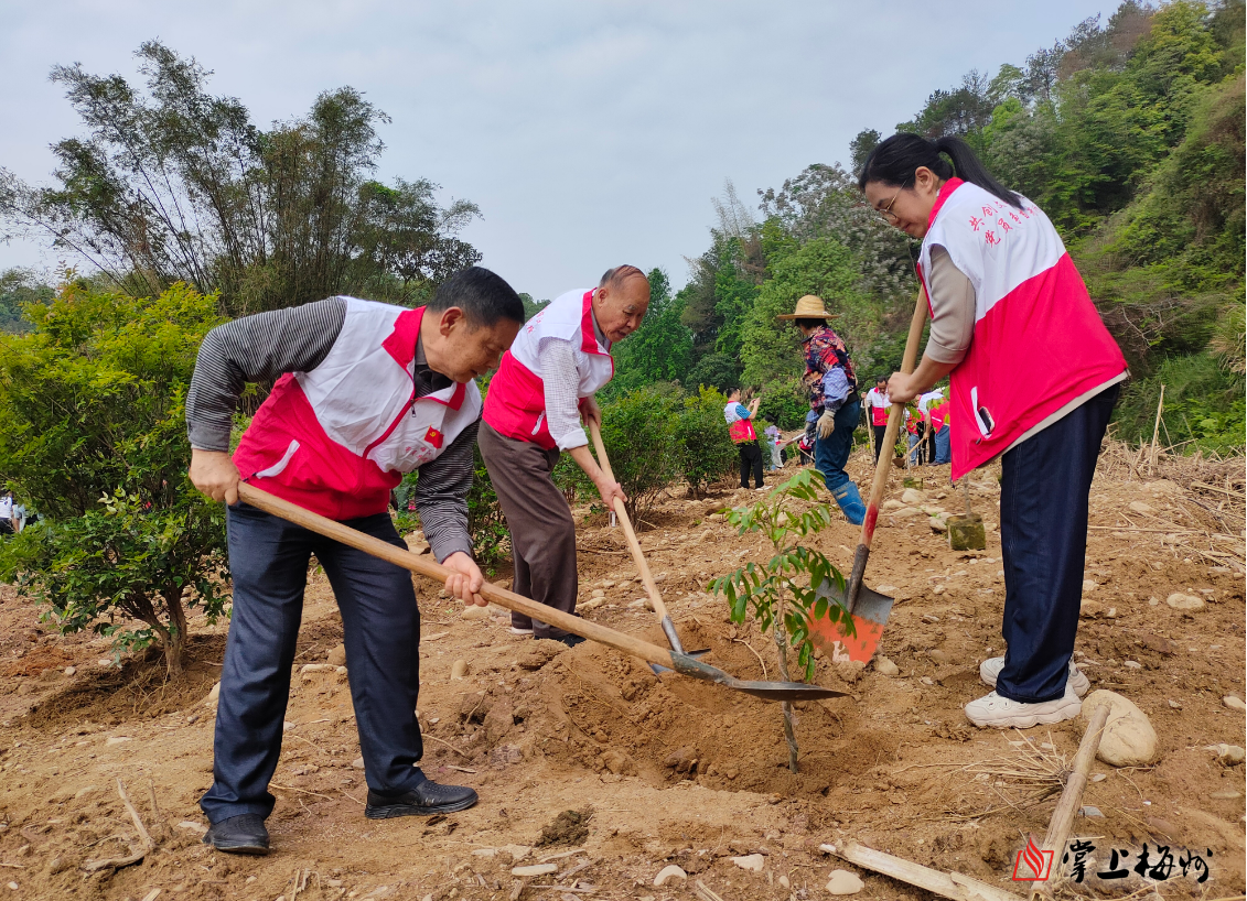 掌上梅州讯 春雨绵绵万物长,植树添绿正当时。4月11日,梅江区组织退休干部、党员志愿者等30多人,前往长沙镇大密村开展“共建银发林 共植一片绿”义务植树活动。