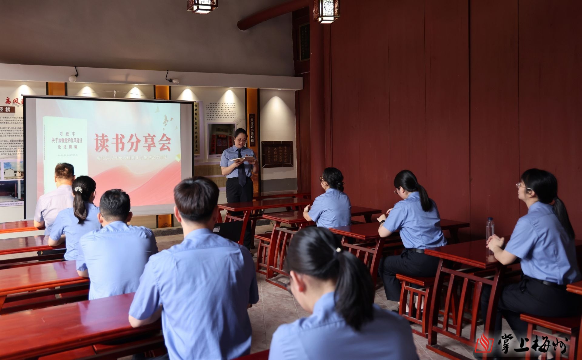 活动伊始,梅江区检察院的青年干警们结合讲解员的介绍,了解梁伯聪家族的传承故事,感受优秀家风的魅力。随后,全体青年干警认真研读《习近平关于加强党的作风建设论述摘编》部分章节内容,学习中央八项规定及其实施细则原文,深刻领会精神内涵。