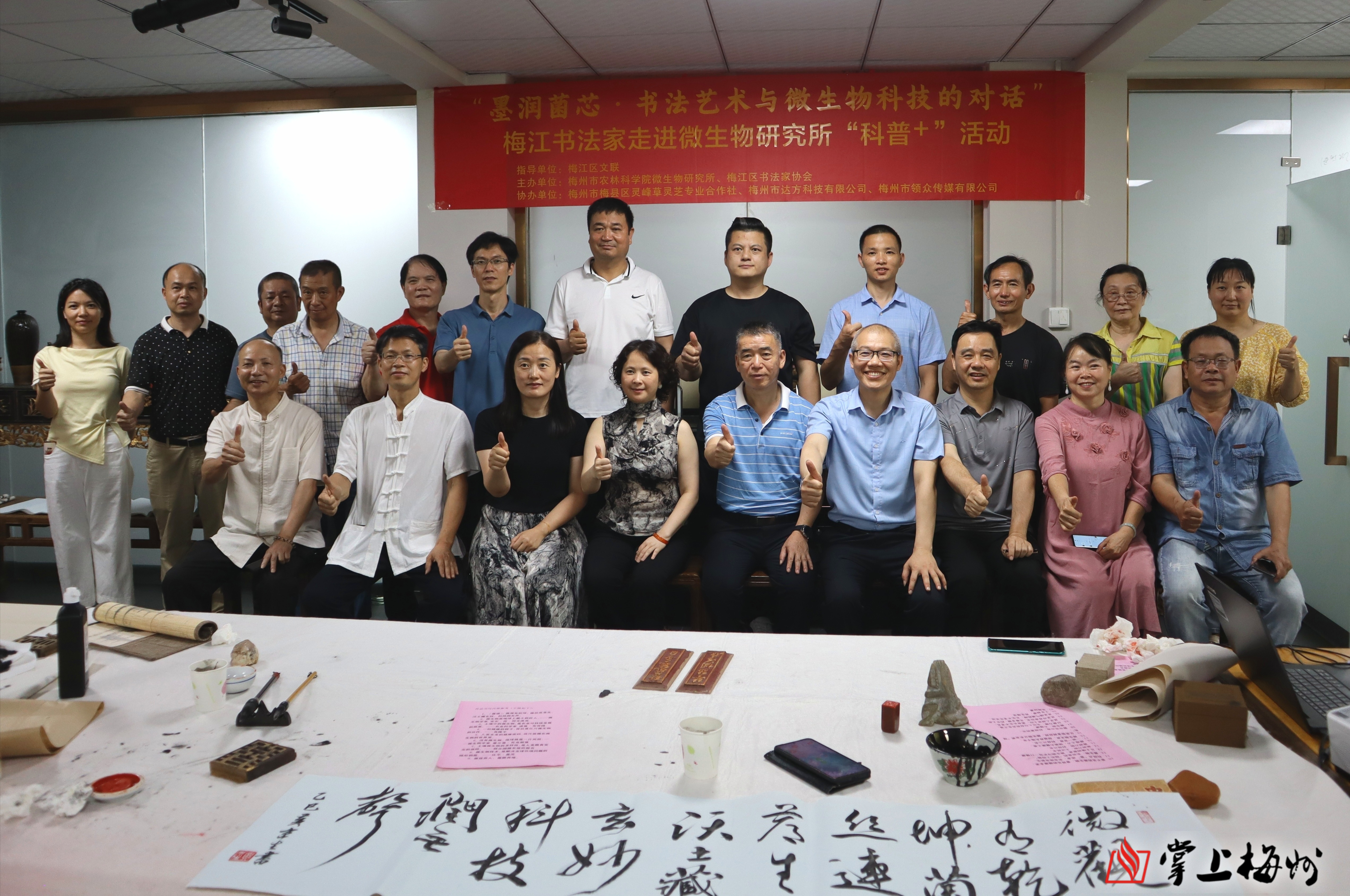 掌上梅州讯 5月16日下午,“墨润菌芯·书法艺术与微生物科技的对话”活动在市农林科学院微生物研究所举行。活动以书法艺术为桥梁,联结传统文化与现代科技,开启了一场科学与艺术的跨界对话,为公众呈现了一场别开生面的“科普+”文化盛宴。