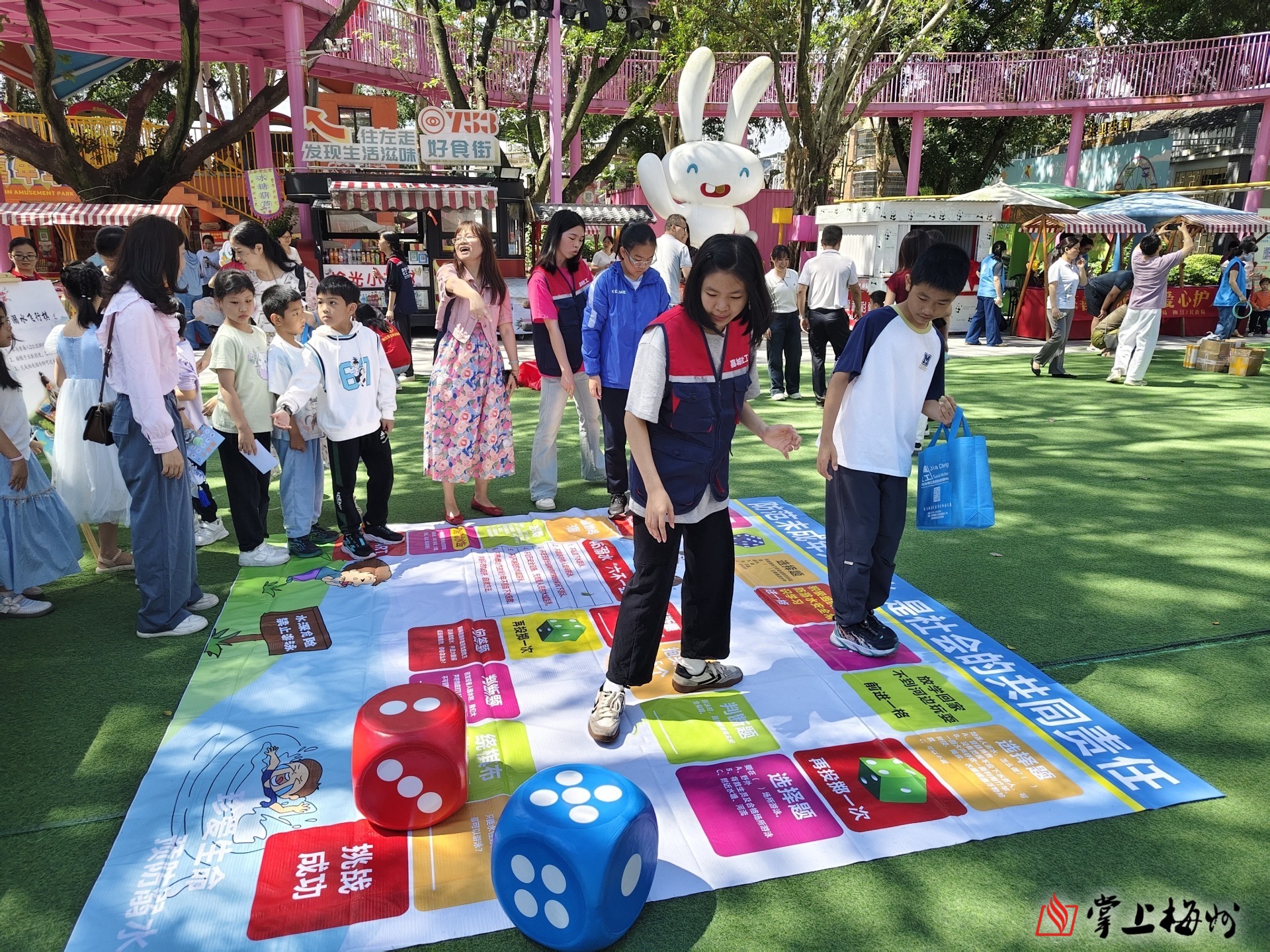 六一节前夕,梅江、梅龙、鸿都、江南、榕树塘等8个社区联合嘉城社会组织服务中心在梅州嘉印拾光音乐广场举办"关爱儿童成长,传承非遗文化"六一主题游园活动。活动现场不仅有醒狮、川剧变脸、琵琶独奏等精彩非遗表演,还有漆扇制作、传统投壶游戏等11个非遗和传统文化体验项目。现场还设置了“防溺水”“防欺凌”等安全知识宣传、普法宣传趣味游戏区,吸引了众多亲子参与其中。孩子们在丰富的实践中体验非遗魅力,同时收获知识和快乐。