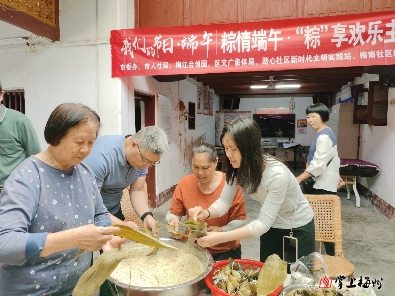 端午节前,新中社区联合市委宣传部、区发改局、中行梅江支行等单位在华景豪庭开展“粽叶飘香迎端午,幸福和谐邻里情”端午主题活动,社区长者和青少年欢聚一堂,体验传统共迎端午。“粽叶要卷成漏斗状,米压紧实,线绳绕三圈……”经验丰富的社区长者们化身“包粽导师”,手把手教授青少年制作粽子。卷叶、填米、裹馅、捆扎,动作从生疏到娴熟,三角粽、四角粽、创意“小福袋粽”陆续诞生,中华民族优秀传统文化在欢声笑语和指尖中传承。路心社区、白马社区也先后组织社区群众一齐包粽子品美食,增进邻里情谊。