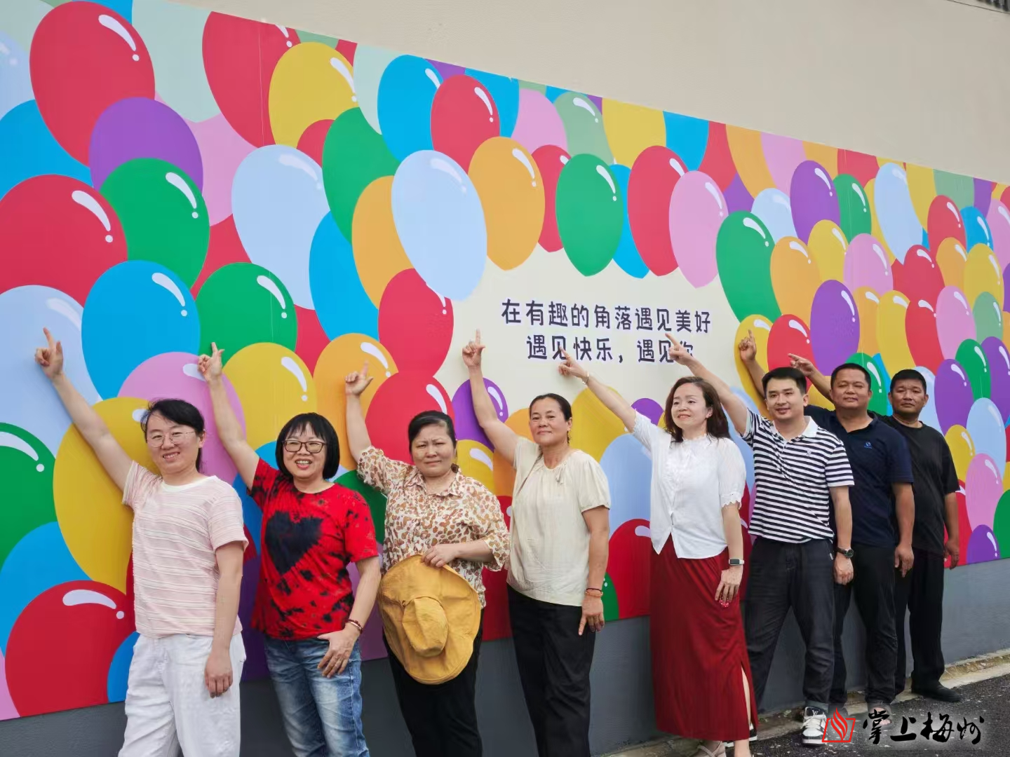 长沙镇通过发动镇村干部、党员群众与企业共建共享,将自然山水资源转化为“流量密码”。长沙墟镇“十里碧道”渡口便是典型案例——曾经鲜为人知的渡口,通过给树木“穿彩衣”、给楼梯“添色彩”、打造“熊猫上树”水管等措施,搭配夜间灯光秀,一跃成为假期热门打卡点。“打卡-消费-传播”的良性循环,进一步提升了乡村吸引力。游客李女士表示:“‘二十四节气’跳格设计和墙面卡通人物让孩子玩到不想走!”