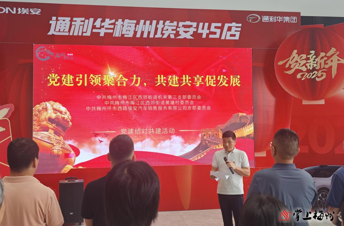 掌上梅州讯 6月11日,梅江区西郊街道机关第三党支部、黄塘村党委与环市西路埃安汽车销售服务有限公司党支部举行党建共建活动启动仪式。活动以“党建引领、资源共享、合作共赢”为主题,旨在通过党组织间的深度联动,整合优势资源,推动基层党建创新,为乡村振兴与企业高质量发展注入新动能。