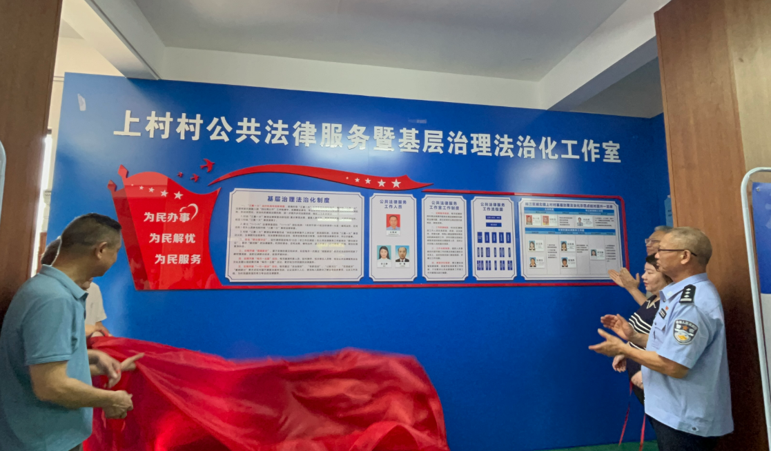 掌上梅州讯 为提升基层治理法治化水平,推动法治乡村建设再上新台阶,6月13日上午,梅江区城北镇上村村公共法律服务暨基层治理法治化工作室揭牌。梅江区司法局、市公安局梅江分局、梅江区妇联、梅江区城北镇、广东立政律师事务所等普法、公法联盟单位代表及上村村党员代表共60余人参加揭牌仪式,共同开启基层依法治理新篇章。
