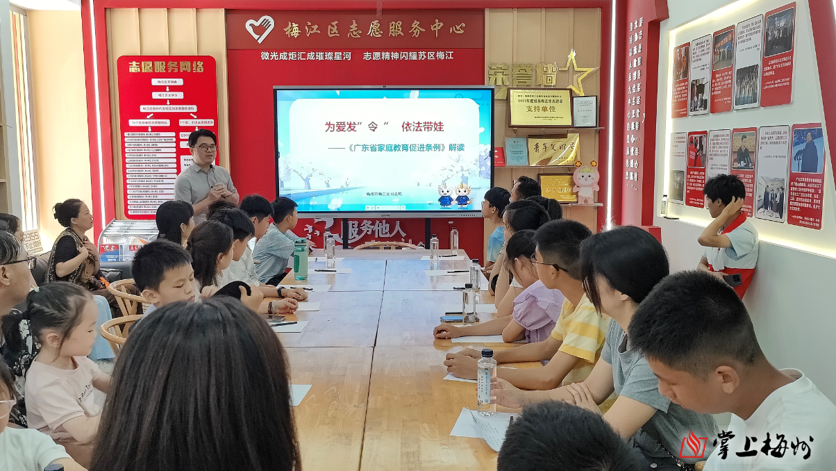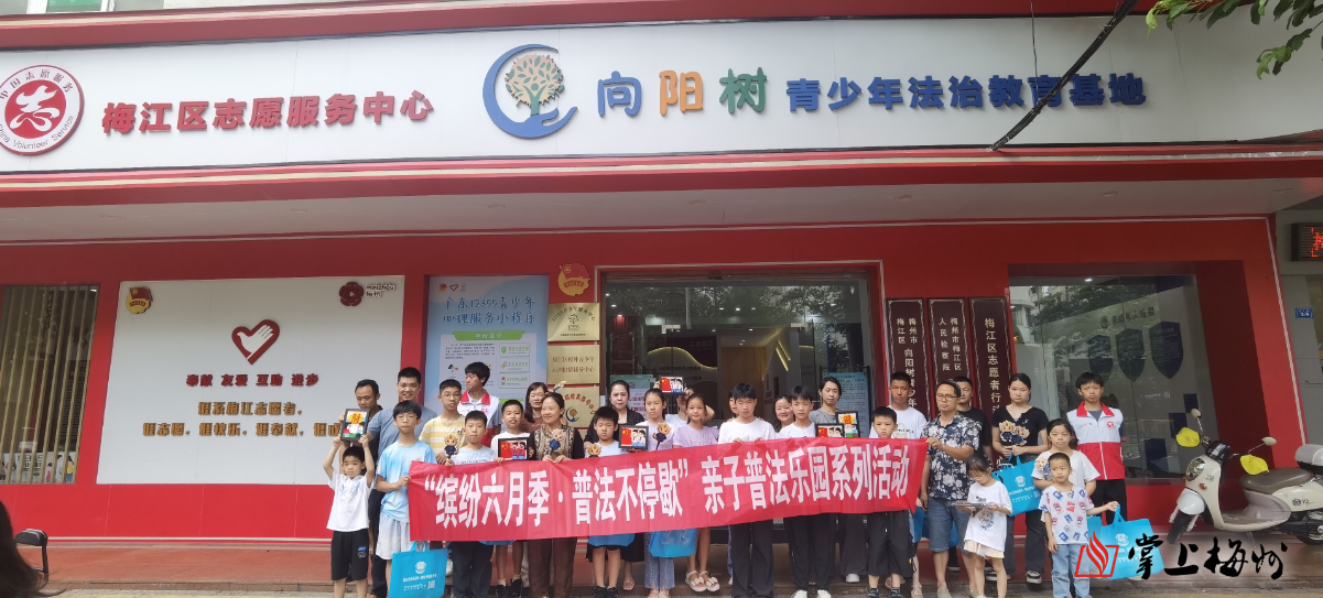 掌上梅州讯 6月14日上午,梅江区“普法联盟”“公法联盟”以法治 IP 形象“圆宝”为纽带,以“为爱发‘令’ 依法带娃”为主题,组织区检察院、区司法局、区妇联、归读律师事务所、嘉诚社会组织等5个部门,在梅江区“向阳树”青少年法治教育基地开展普法宣传活动,实现法律知识与亲子互动的深度融合。