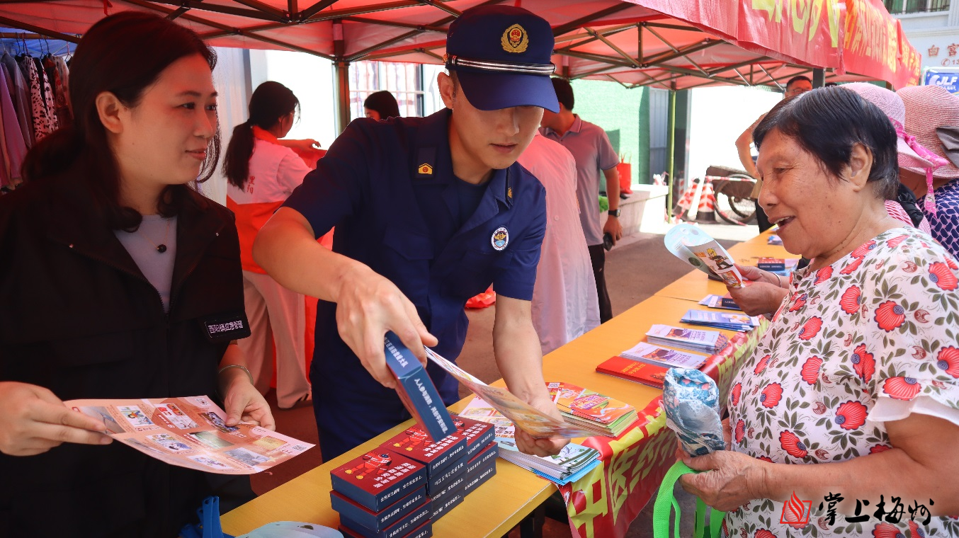 掌上梅州讯 6月24日上午,梅江区西阳镇围绕“人人讲安全 个个会应急——查找身边安全隐患”主题,在白宫社区公王坪广场组织开展“安全生产月”宣传咨询活动,吸引群众广泛参与。