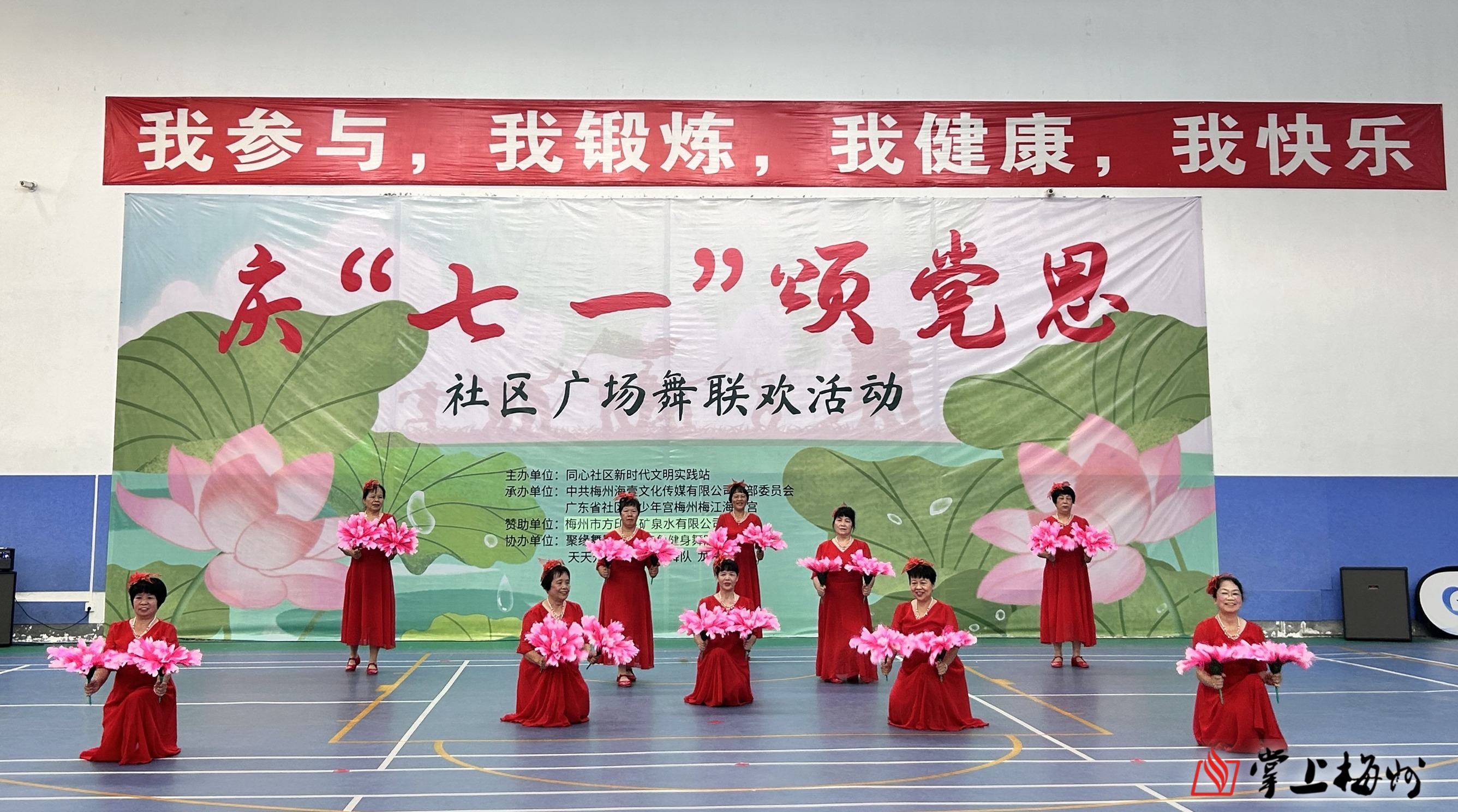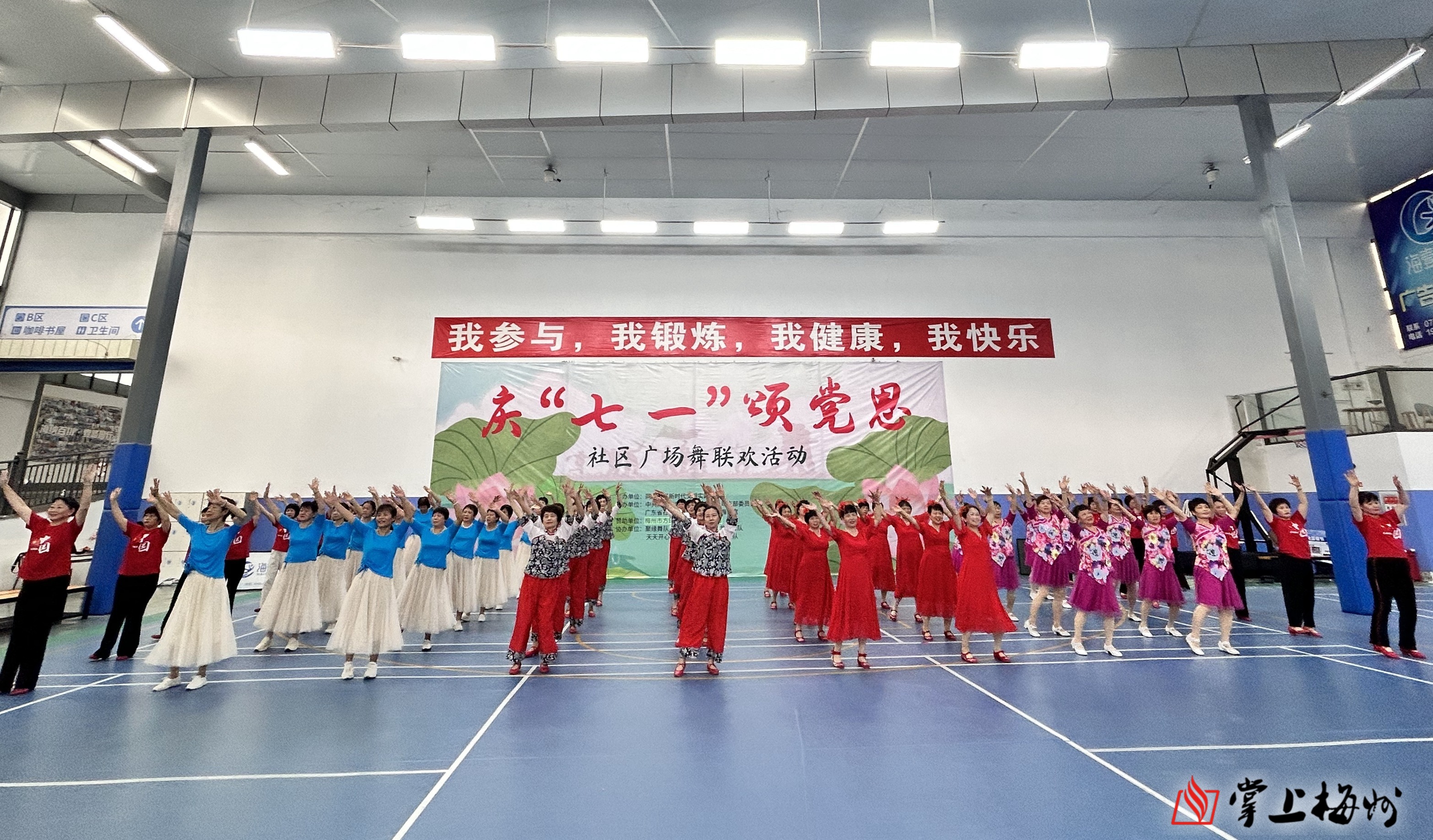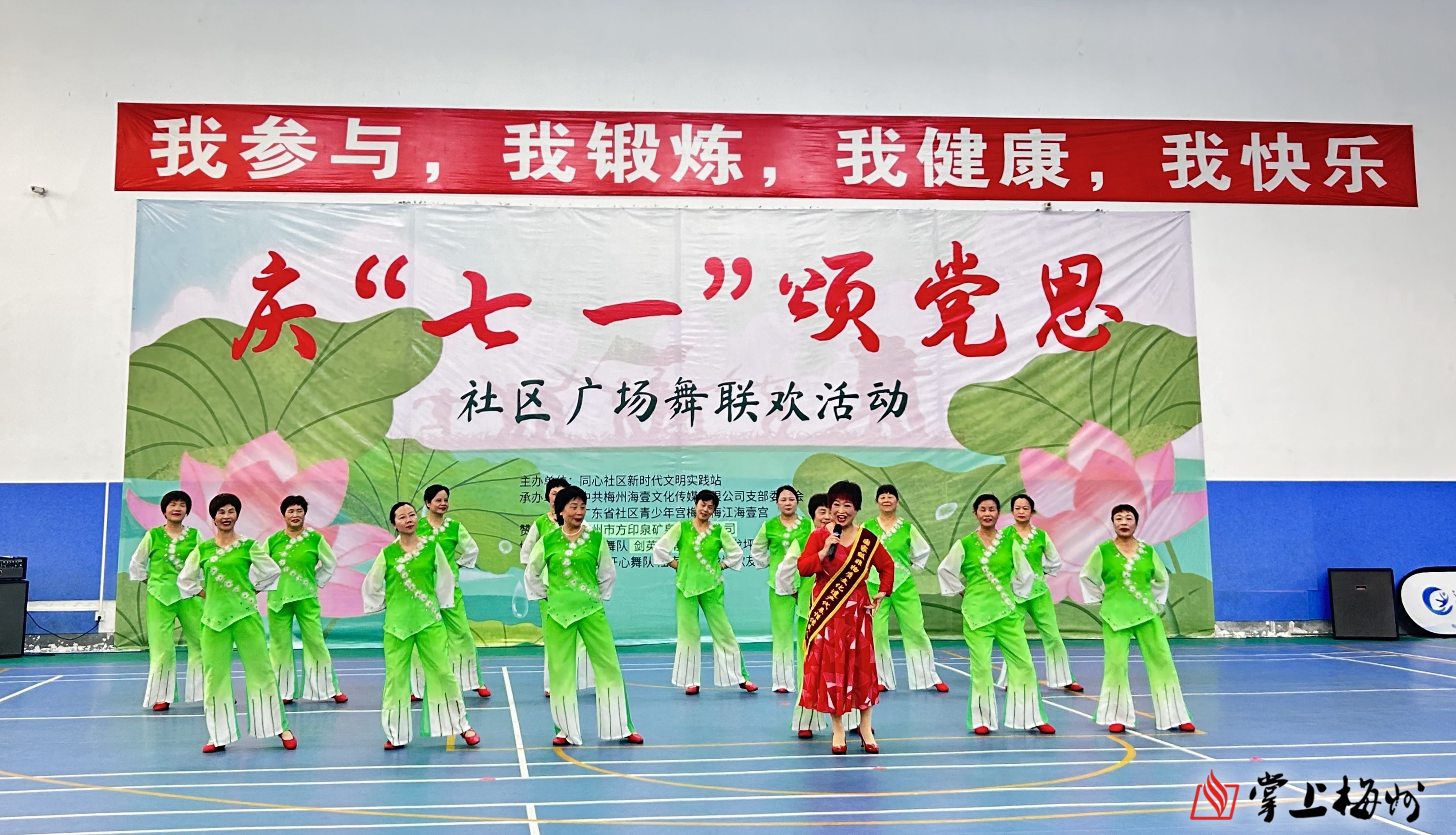 掌上梅州讯 6月30日上午,梅江区三角镇同心社区新时代文明实践站在海壹青少年宫举办“庆七一·颂党恩”主题广场舞展演活动,为党的生日献上深情祝福。