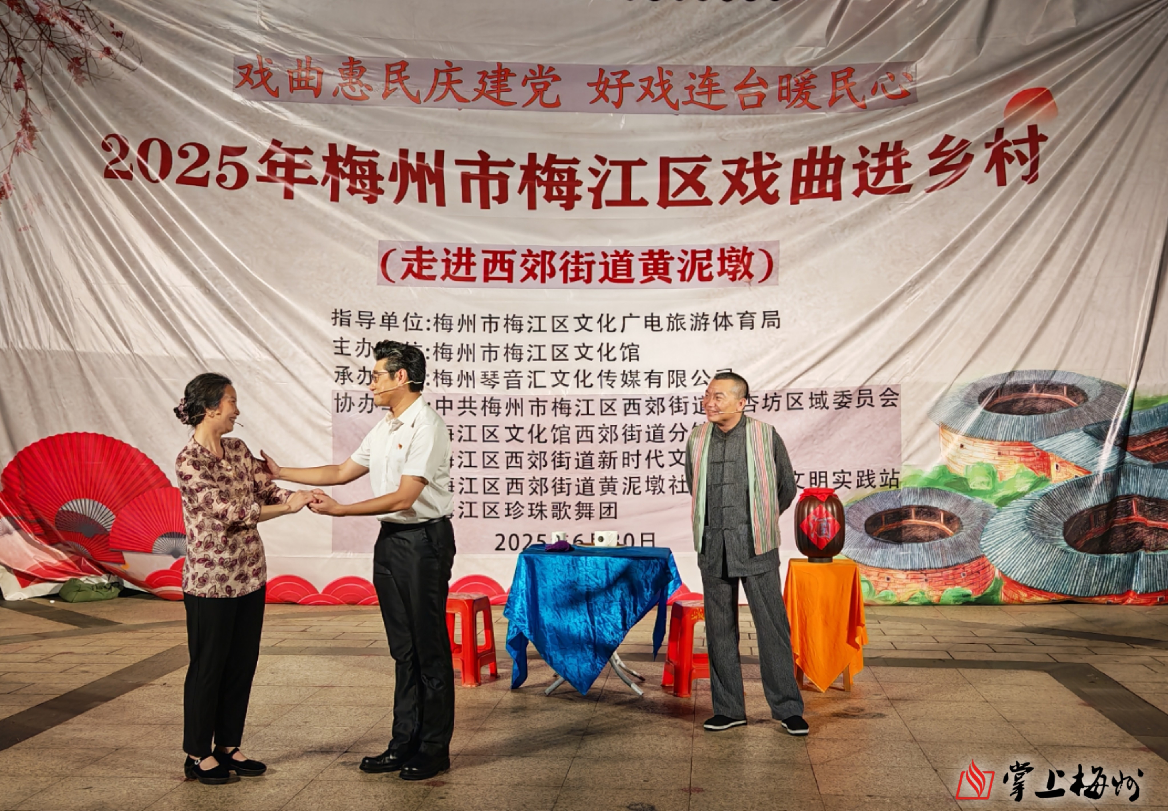 6月30日晚,梅江区西郊街道新时代文明实践所联合梅江区文化馆在黄泥墩珍珠公园举办“戏曲惠民庆建党 好戏连台暖民心”主题演出。舞台上,演员们以饱满的热情和精湛的技艺,生动展现了在党的领导下国家经历的沧桑巨变和人民生活的幸福画卷。活动现场掌声阵阵、喝彩连连,精彩的表演不仅让传统戏曲艺术焕发出新的时代活力,更搭建起一座别具韵味的党群连心桥,让党员群众在艺术的熏陶中重温历史,感受新时代的幸福生活。